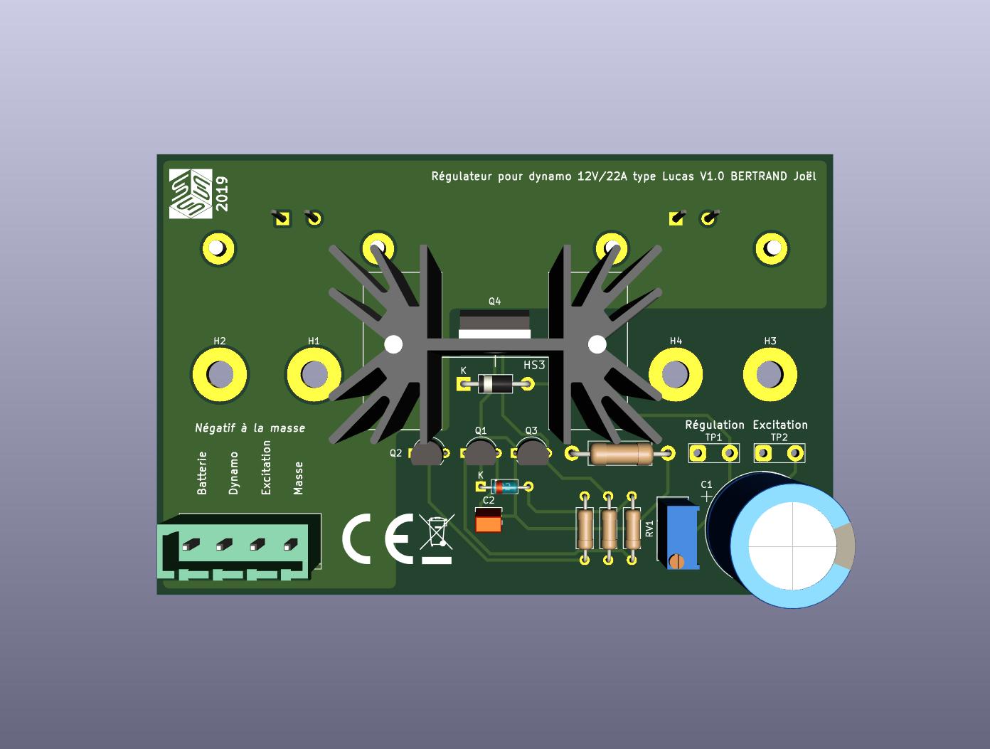 Cette dynamo m'a donné entière satisfaction. En revanche, je ne puis pas en dire autant des régulateurs que l'ont trouve fort cher "made in China". Les plots ne sont pas parallèles, les contacts pas en face les un des autres, bref, avec une dynamo 11A, ça passe, avec une 22A, ça casse. Pour info, j'en ai dépiauté une, les contacts ne passent pas plus de 16A lorsqu'ils sont parfaitement alignés. J'en ai donc cassé, mais j'en ai cassé (qui restaient collés en éteignant le moteur). J'en ai eu assez et j'ai fait le mien, électronique, qui se monte à la place du régulateur mécanique. Au passage, si ça intéresse du monde, je peux les fabriquer en série.