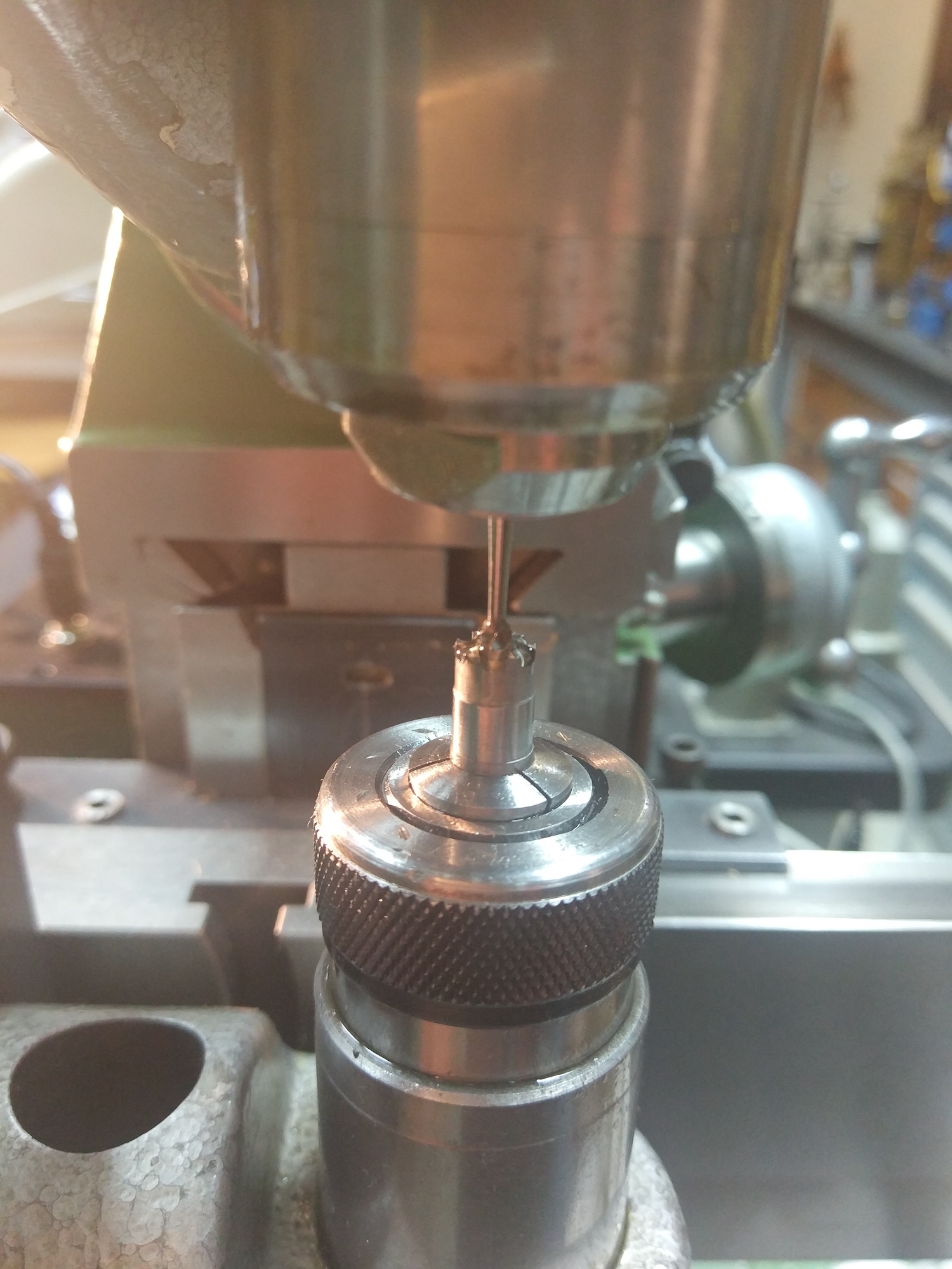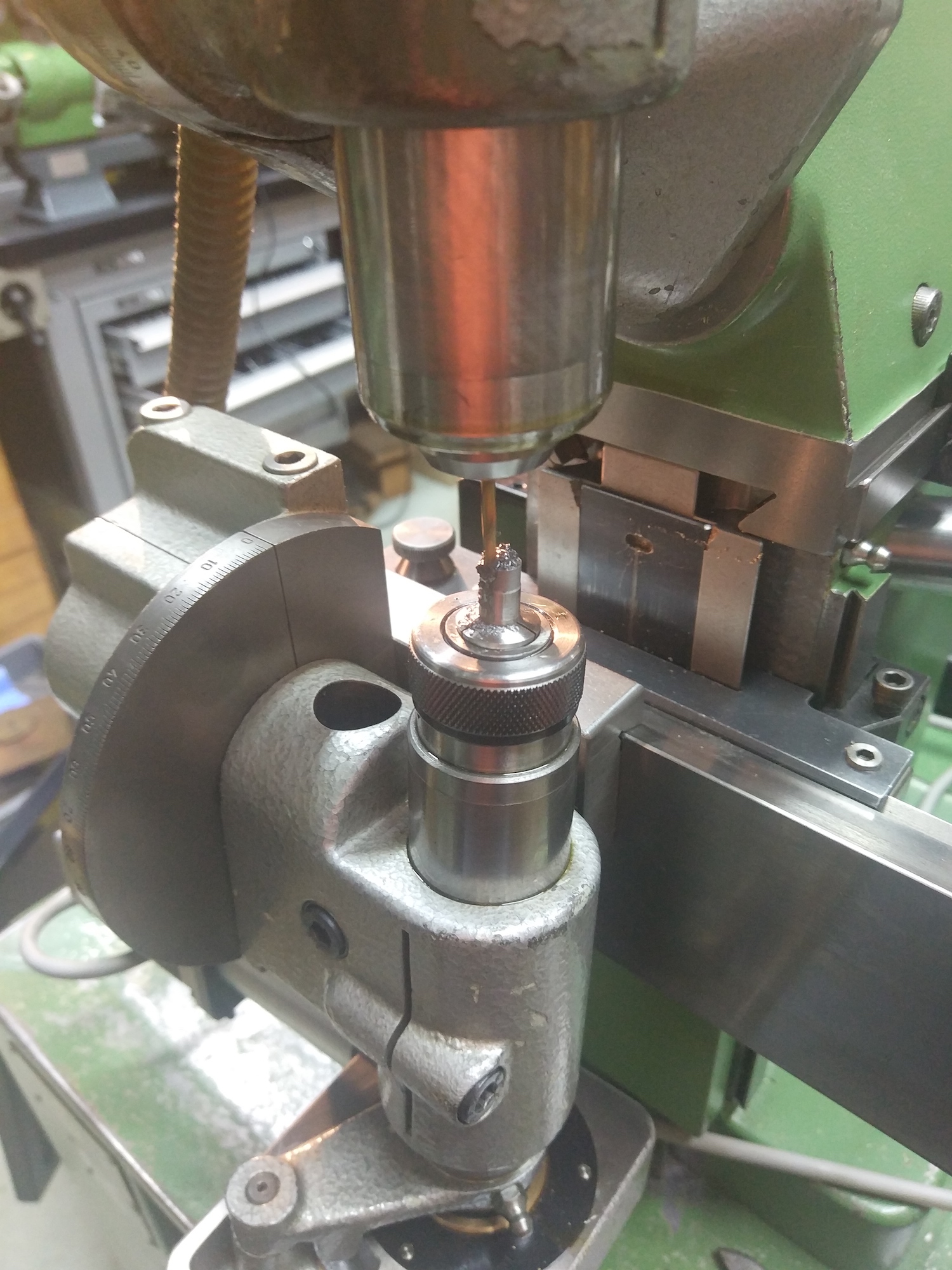 - Centrer à la fraiseuse, donner une inclinaison de 5° au poinçon de sorte que le foret de 2.5 mm porte plat.