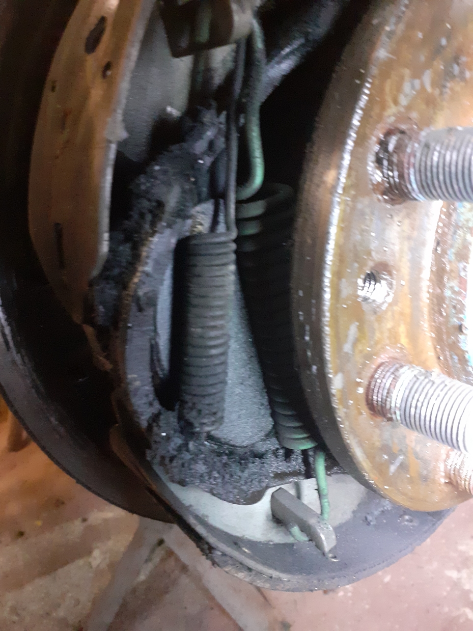 Tambour et machoire/garniture huileuses, changement de garniture à rivetée, tout de même encollée avant.