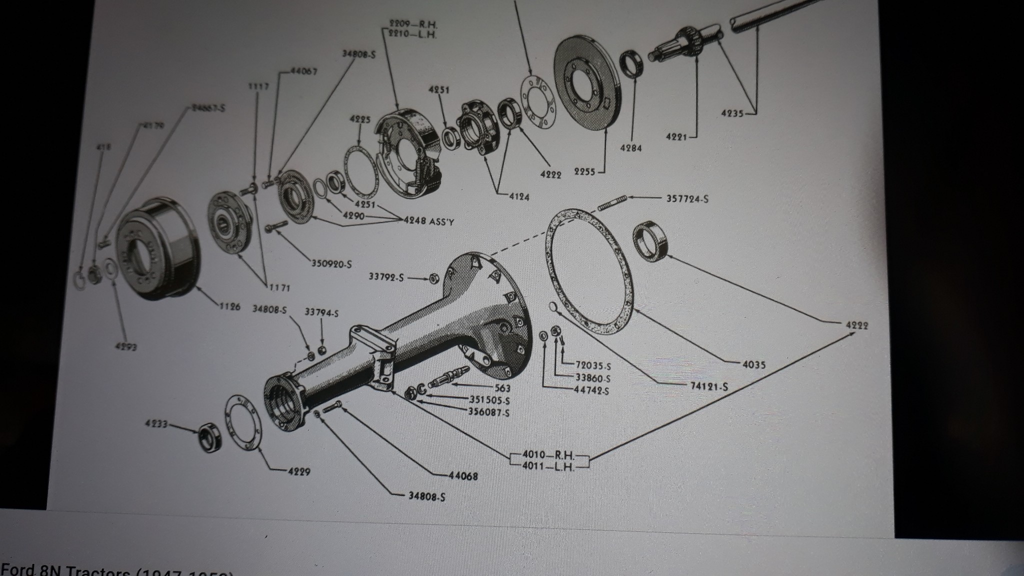 Si c'est comme le TEA suffit de tirer dessus et l'ensemble sort sans problème. ATTENTION c'est lourd et pas facile à manipuler, prévoir l'endroit pour le poser. Pense que c'est sans doute un roulement monté forcé sur l'arbre ! Sur l'eclaté, beaucoup de pièces, prends soin de noter leurs positions, photos ou repaires. Basé ma réponse sur le TEA20 qui me semble plus simple que ton 8N moins de pieces, mais la difficulté pour sortir et mettre un roulement monté a force est là même.