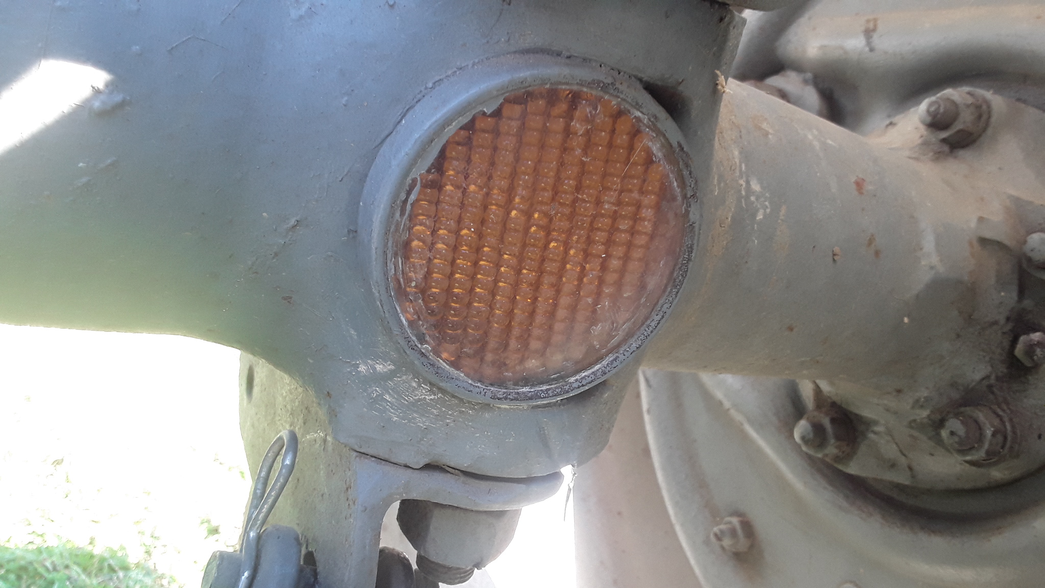 Autre solution mise en œuvre sur mon TEA : réfléchissant fixé sur une équerre métallique elle même tenue en place par l'écrou du boulon qui maintien l'aile sur la trompette