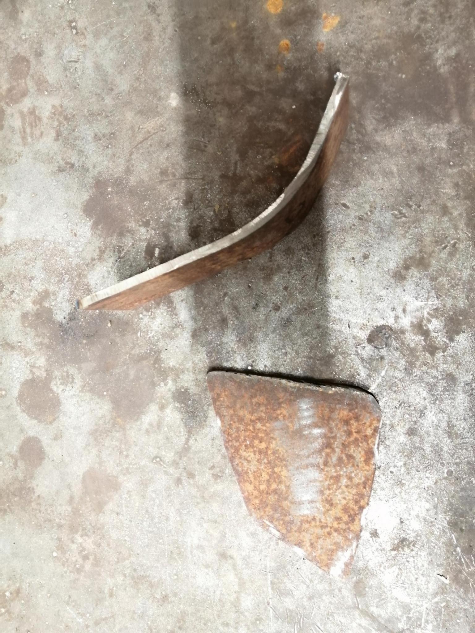les premiers tests après soudure de la lames d'usure ,fer plat de 7-8 mm