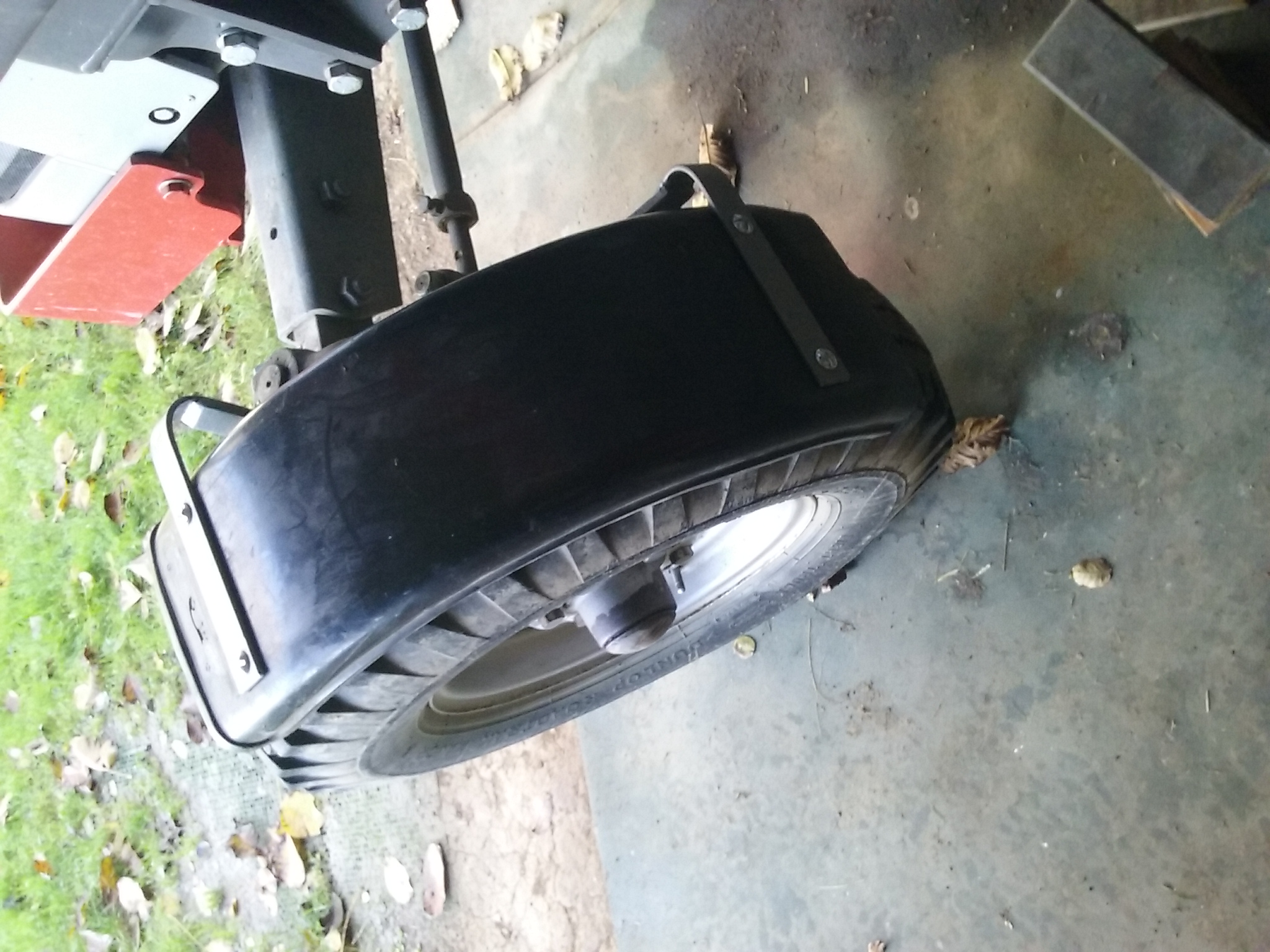 J'ai fabriqué à moindre coût des gardes boues avec du fer de 30x8 et 30x5 pour les supports et utilisé un garde boue de récupération sur une remorque double essieu coupé en 2.
