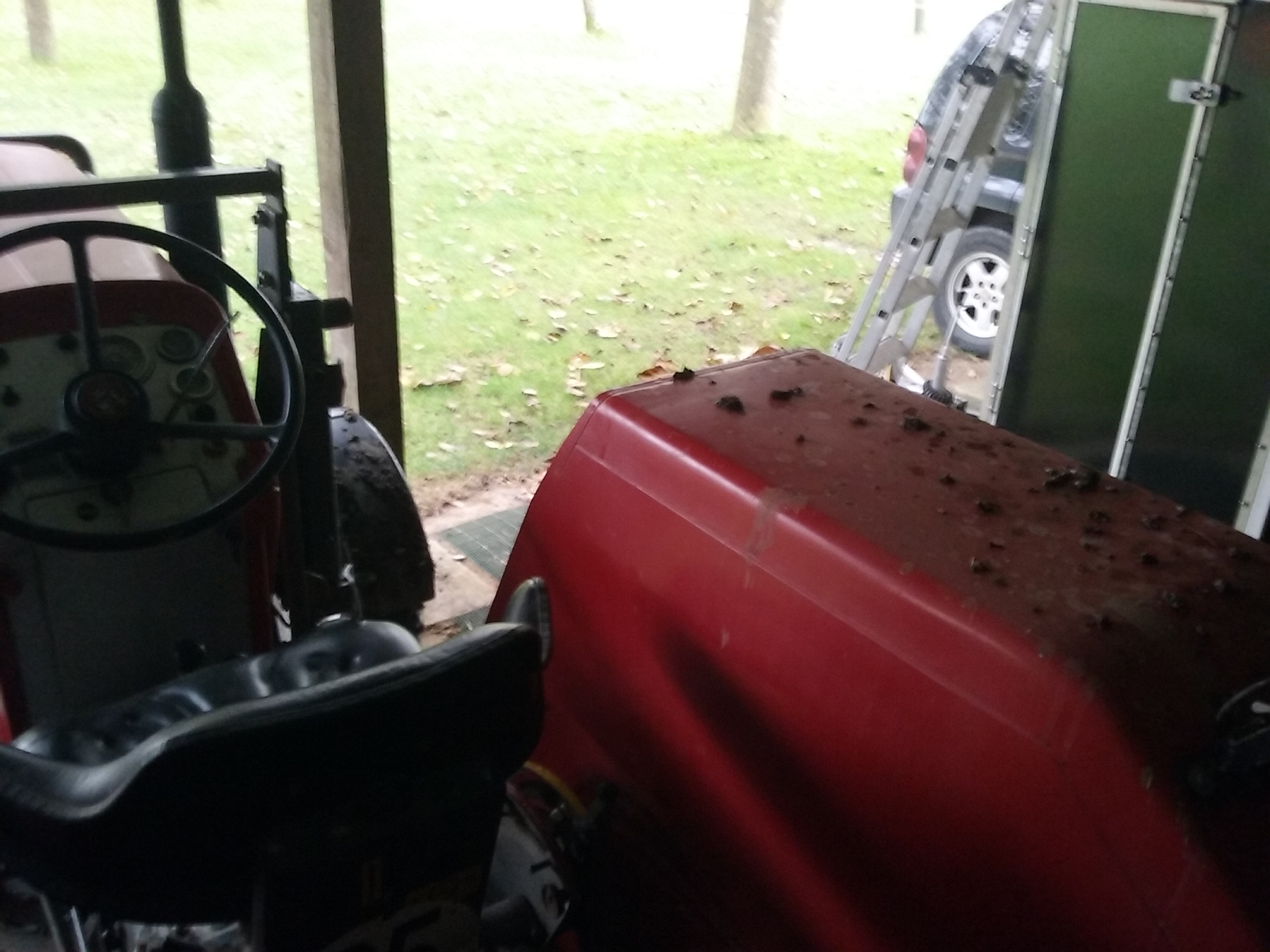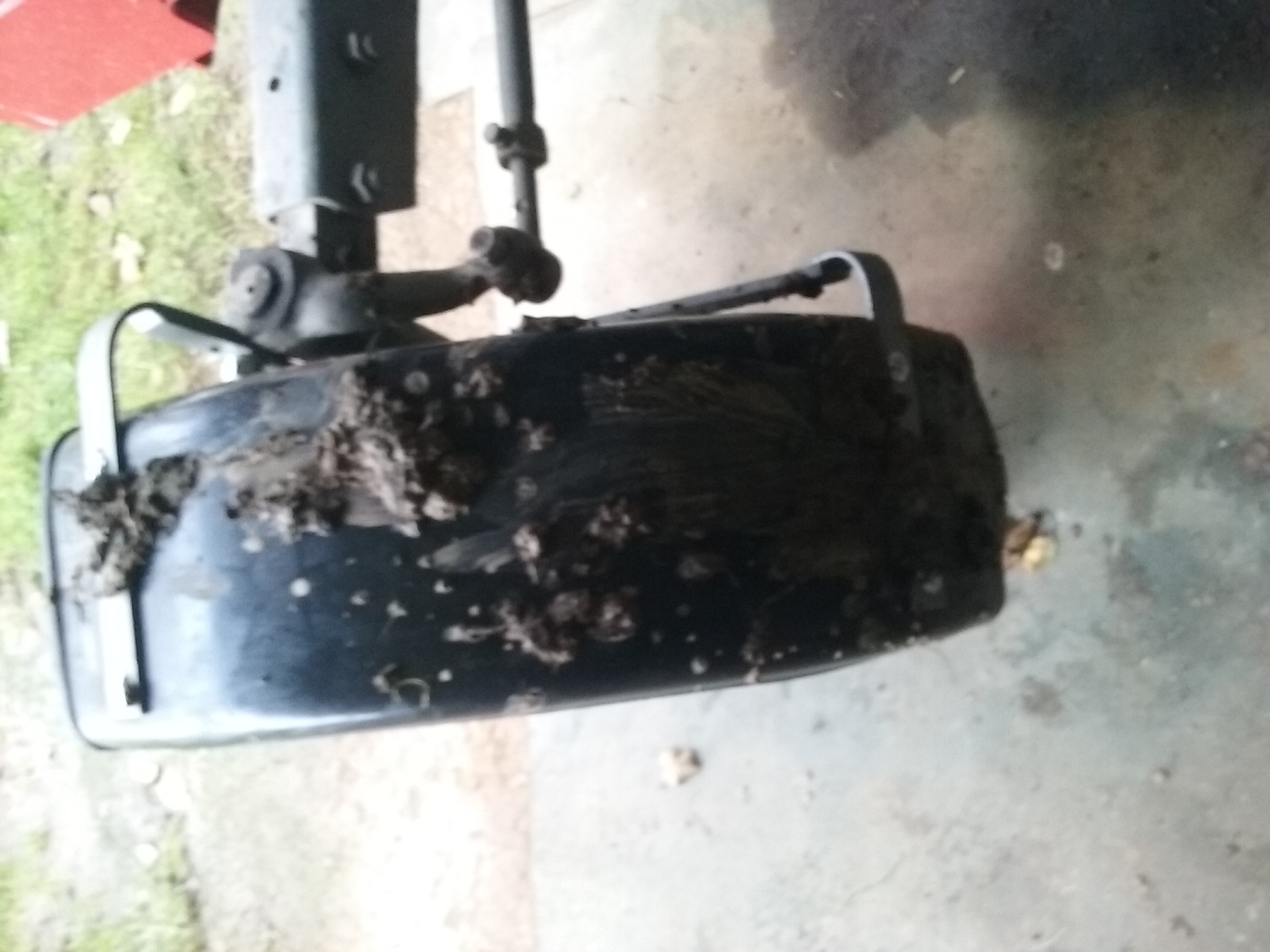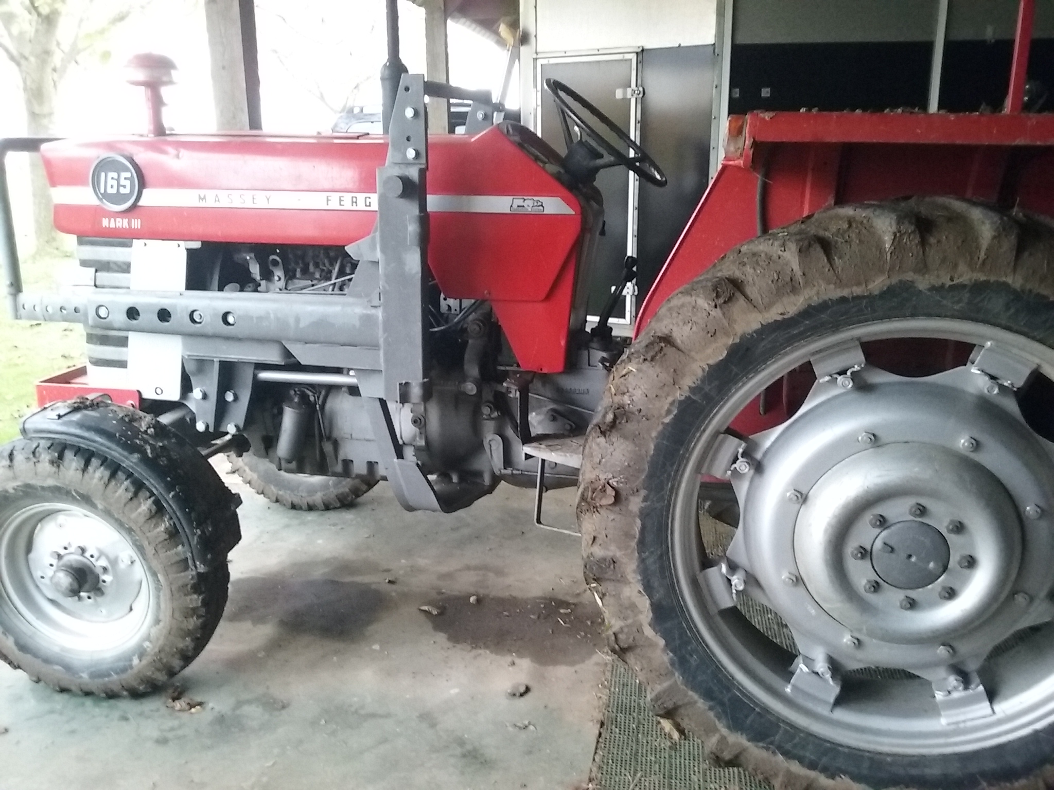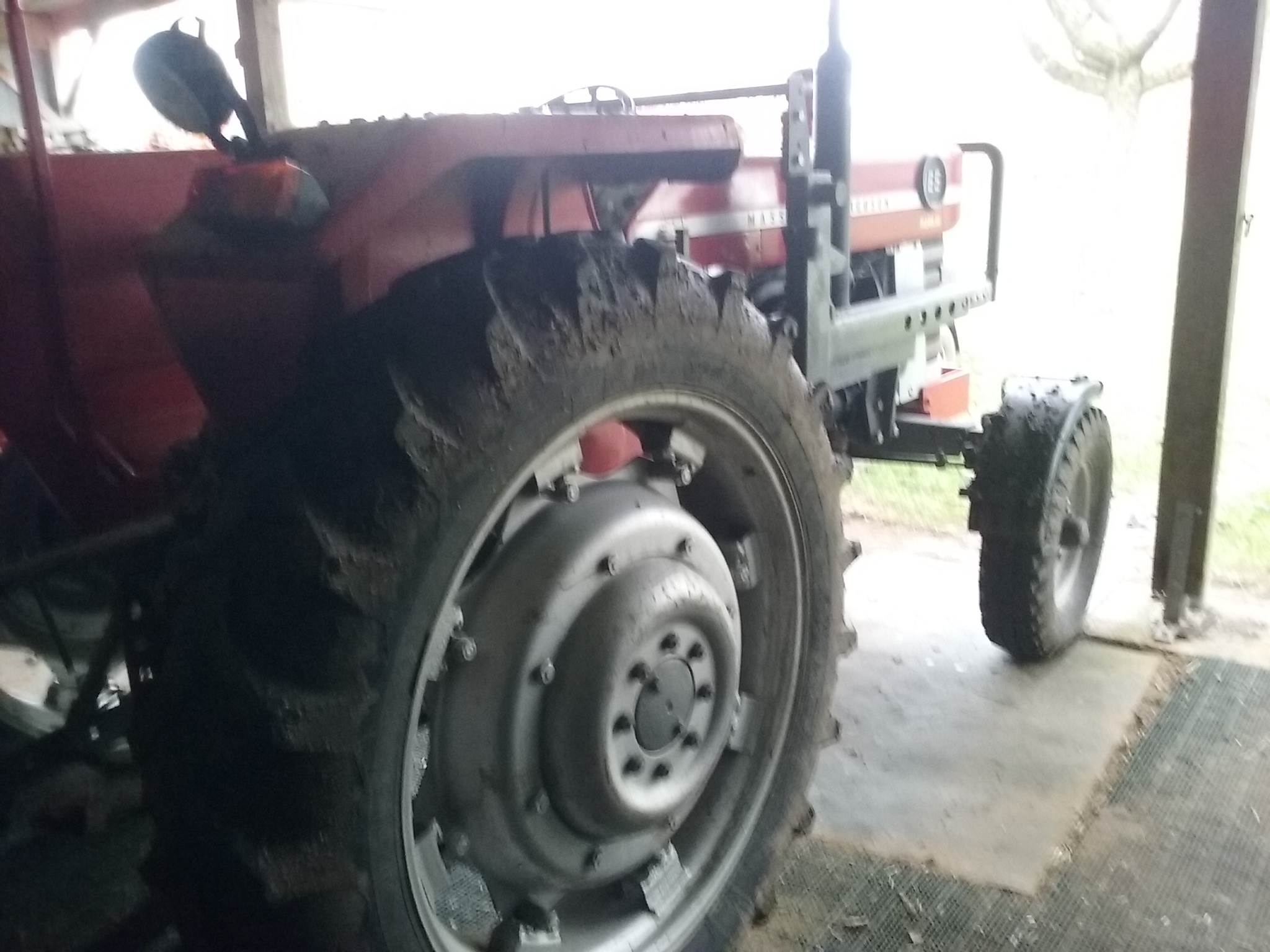 Je souhaitais vous faire part d'une petite amélioration pour les jours de pluie réalisée sur mon MF 165. Les routes de nos campagnes ne sont pas toujours très propres (normal on est à la campagne et la terre sort toute seule des champs...) et vous n'êtes pas sans avoir remarqué que l' on se prend toutes les projections provenant des roues avants dans la figure !