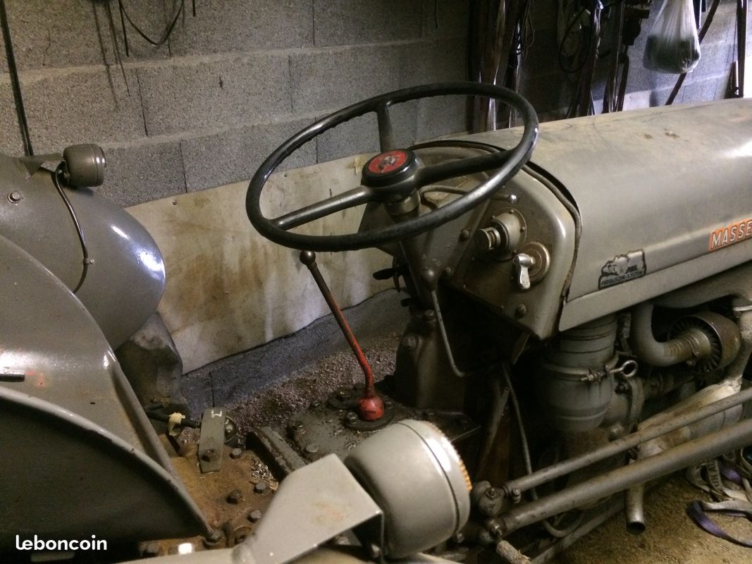 le volant c est un vrai... de ferguson français... mais... le cabochon est de modèle serie 100... les autocollants... sont de massey ferguson... le pot d échappement de type MF835, mais.... à ce que je peux dire, entretien et refection bien faite, car il a meme encore les gaines éléc en metal d origines. le fauteuil est de type 35... ils lui ont fait des cales pieds.... et diverses choses mais rien de grave.