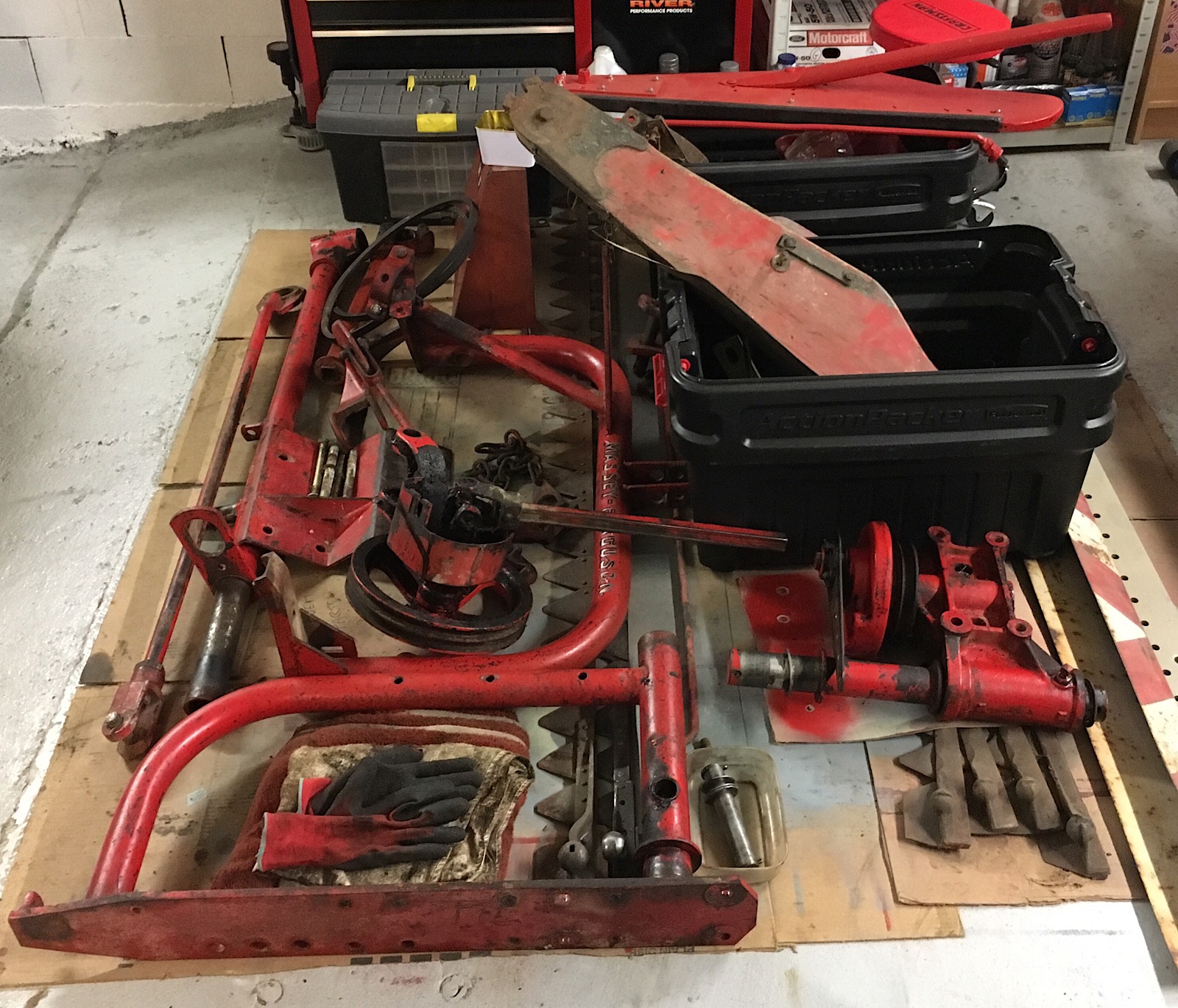 Et j’avance sur ma faucheuse MF832 en parallèle. Sous la crasse et la peinture, des pièces magnifiques. La biellette est comme neuve, je suis vraiment étonné!