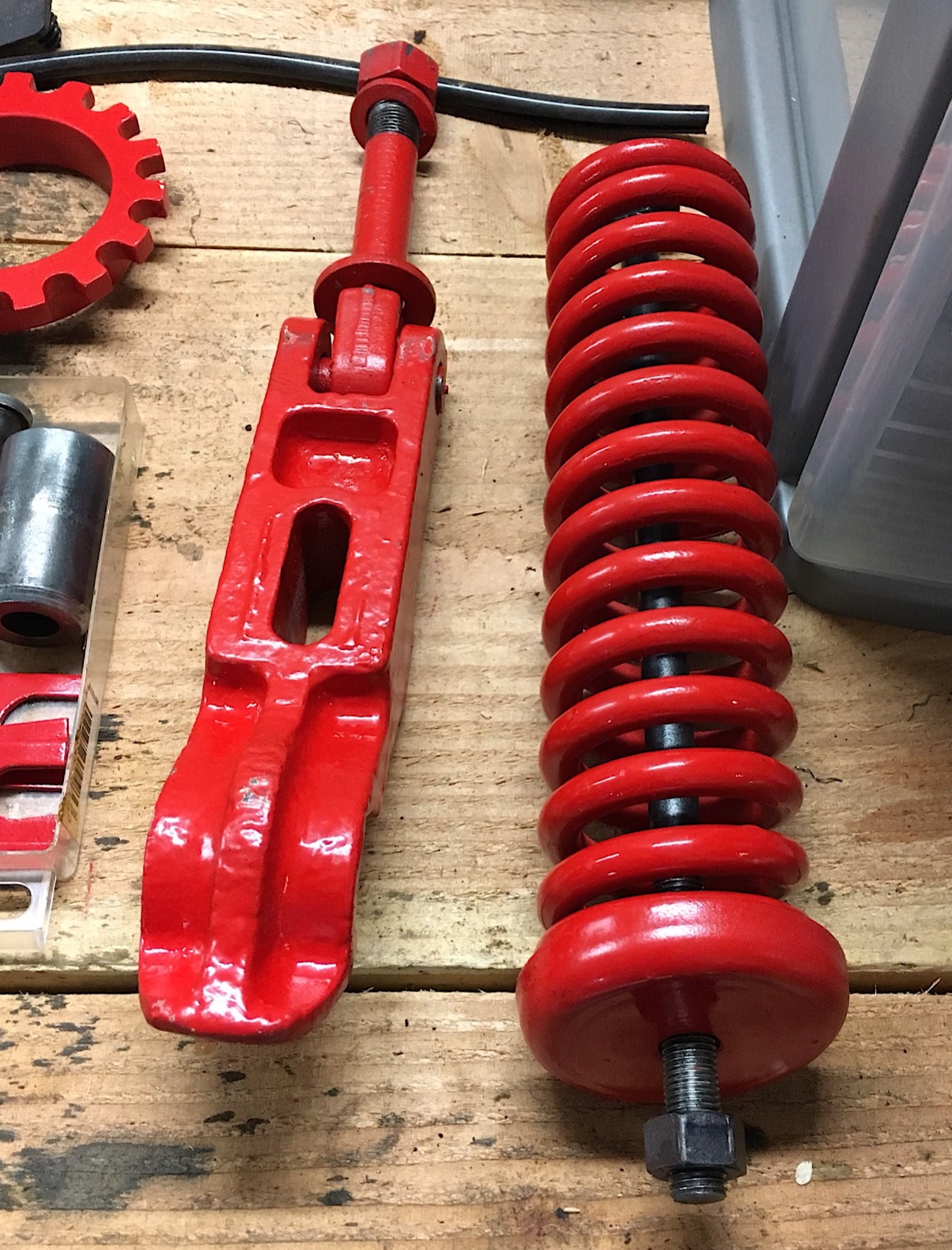 Suite et fin du ressort compensateur. Avec la longue tige filetée bien décapée et graissée, le réglage va pouvoir se faire très facilement maintenant. En effet, malgré le bon état général de l’ensemble, elle n’a pas été simple à dévisser...