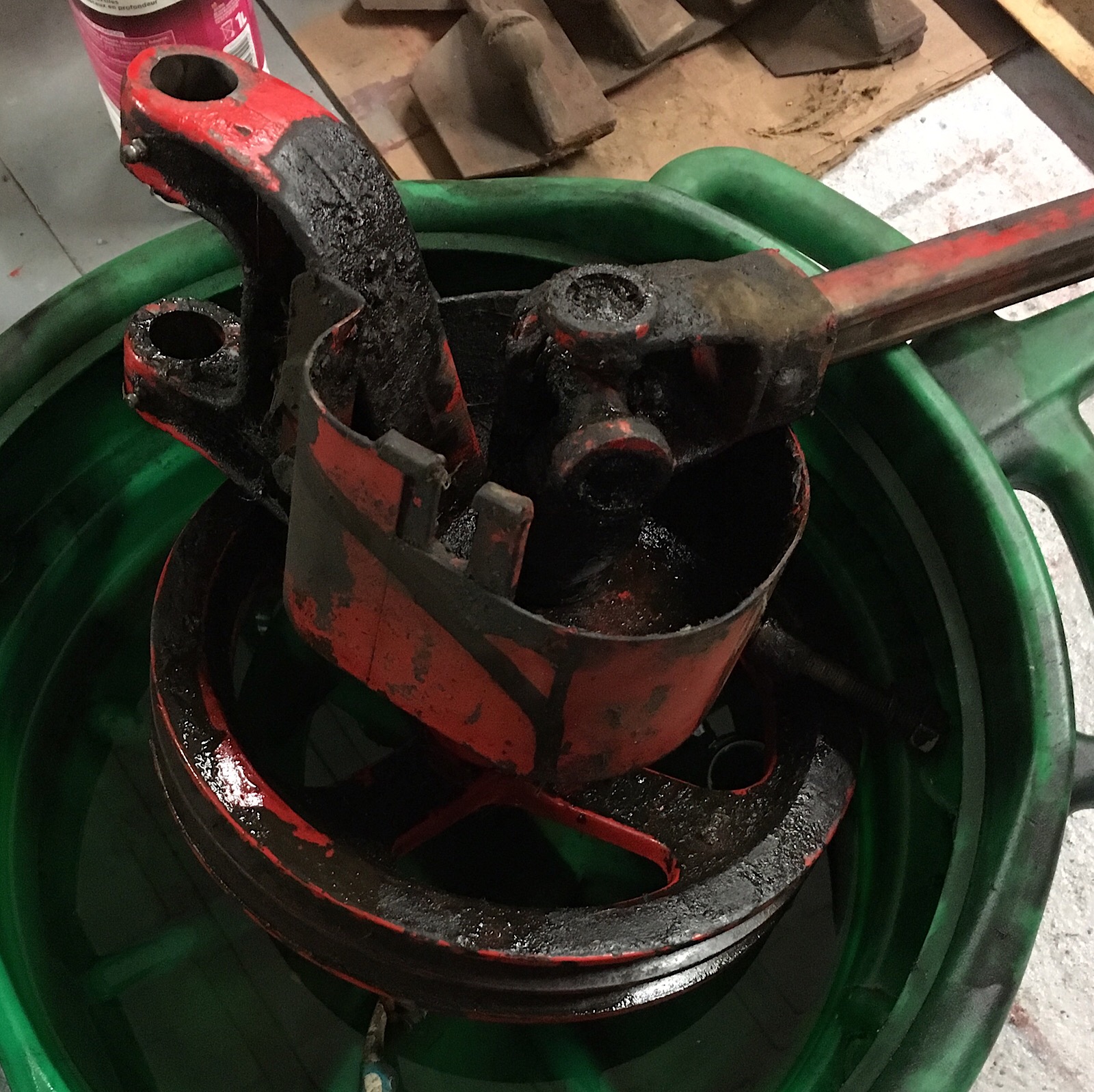 Et j’ai attaqué le cœur de la bête: la poulie motrice. Beaucoup de graisse mêlée à de la terre et des herbes. Ça protège le métal, cette pâte crasseuse, c’est impressionnant. Dessous, c’est comme neuf!