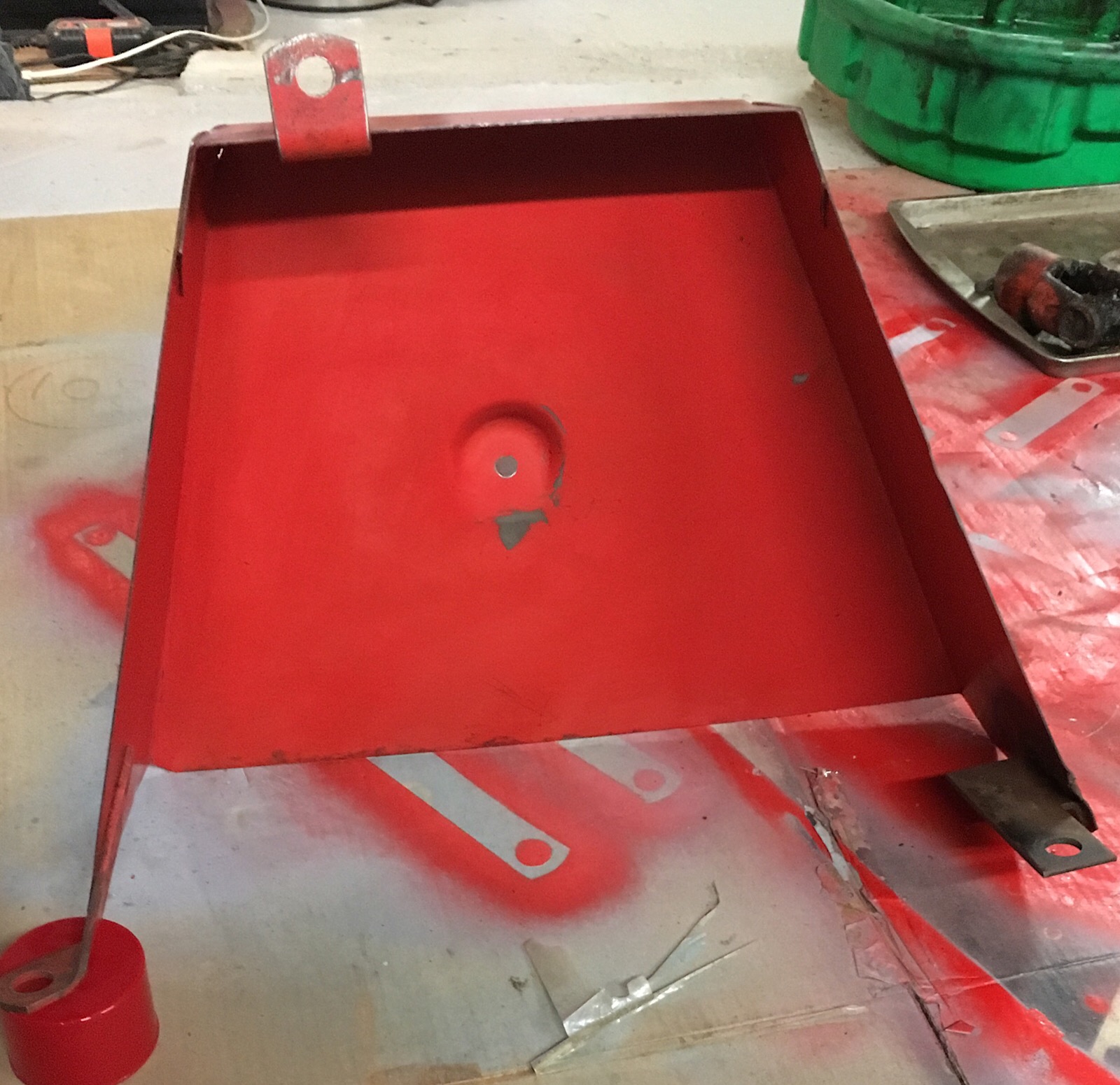 Et je viens de terminer le carter de protection des courroies. Plus simple car relativement bien conservé. J’ai même pu garder l’autocollant.