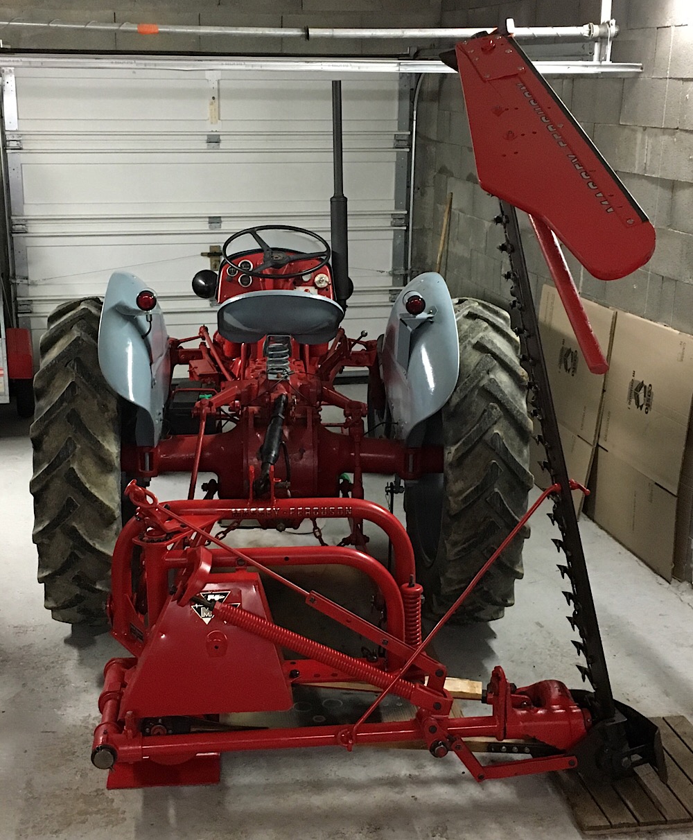 Petit montage “à blanc” de la barre de coupe. En l'état, je ne peux plus sortir la faucheuse du garage! lol