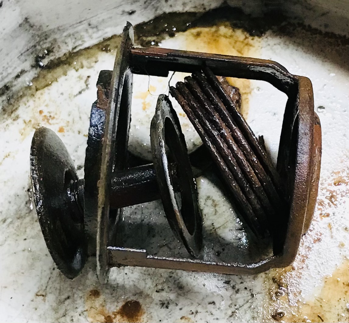 Et vu la forme en berceau du châssis, il y avait aussi beaucoup de saletés à cet endroit.