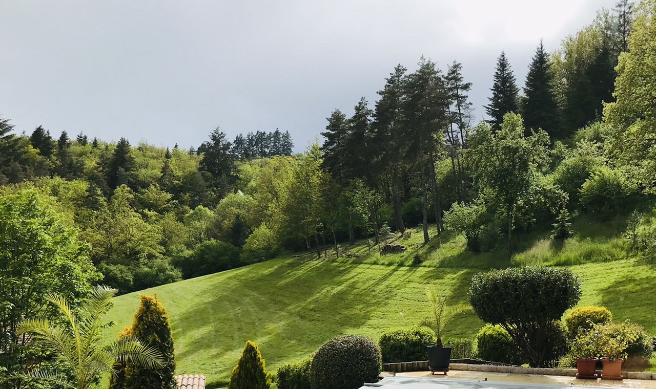 Effectivement vue de la terrasse le paysage est superbe avec cette belle étendue verte copieusement arrosée ces dernieres semaines.