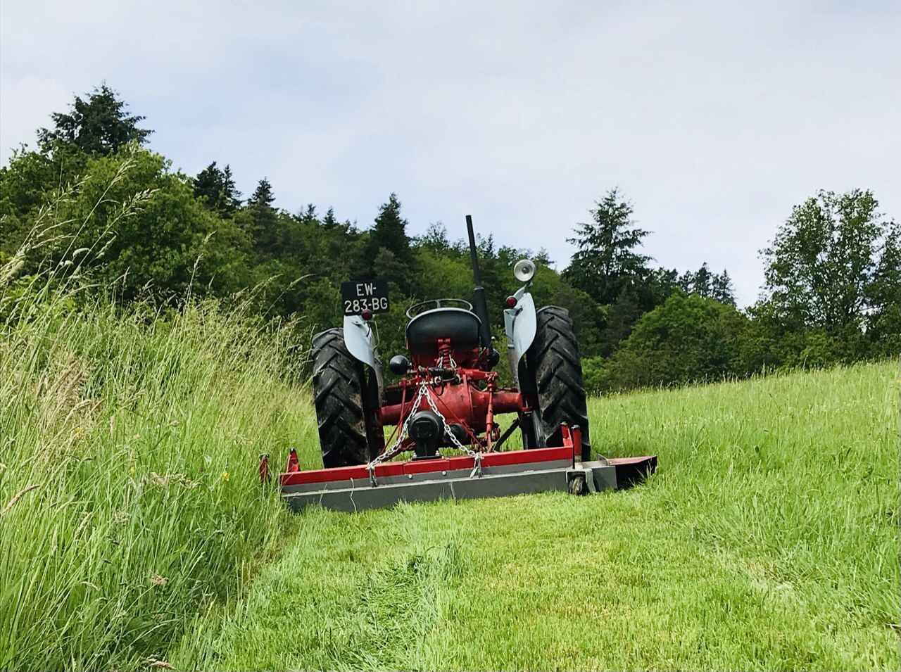 Oui, c’est très agréable par ici, avec des sommets aux alentours culminant à 800-900m, on se croirait un peu dans les Vosges, en moins froid. Pour le tracteur, il a juste fallu que je m’habitue à le manier en pente, car ce n’est pas sans risques, faut bien avouer. Mais en 3 ans, j’ai bien pris le coup de main et à présent, je me régale. C’est un petit tracteur, léger et hyper maniable. Ses 30 cv sont parfaits mais il me manque parfois le 4x4 lorsque le terrain est un peu gras. Quand les roues arrières commencent à patiner, c’est chaud! lol