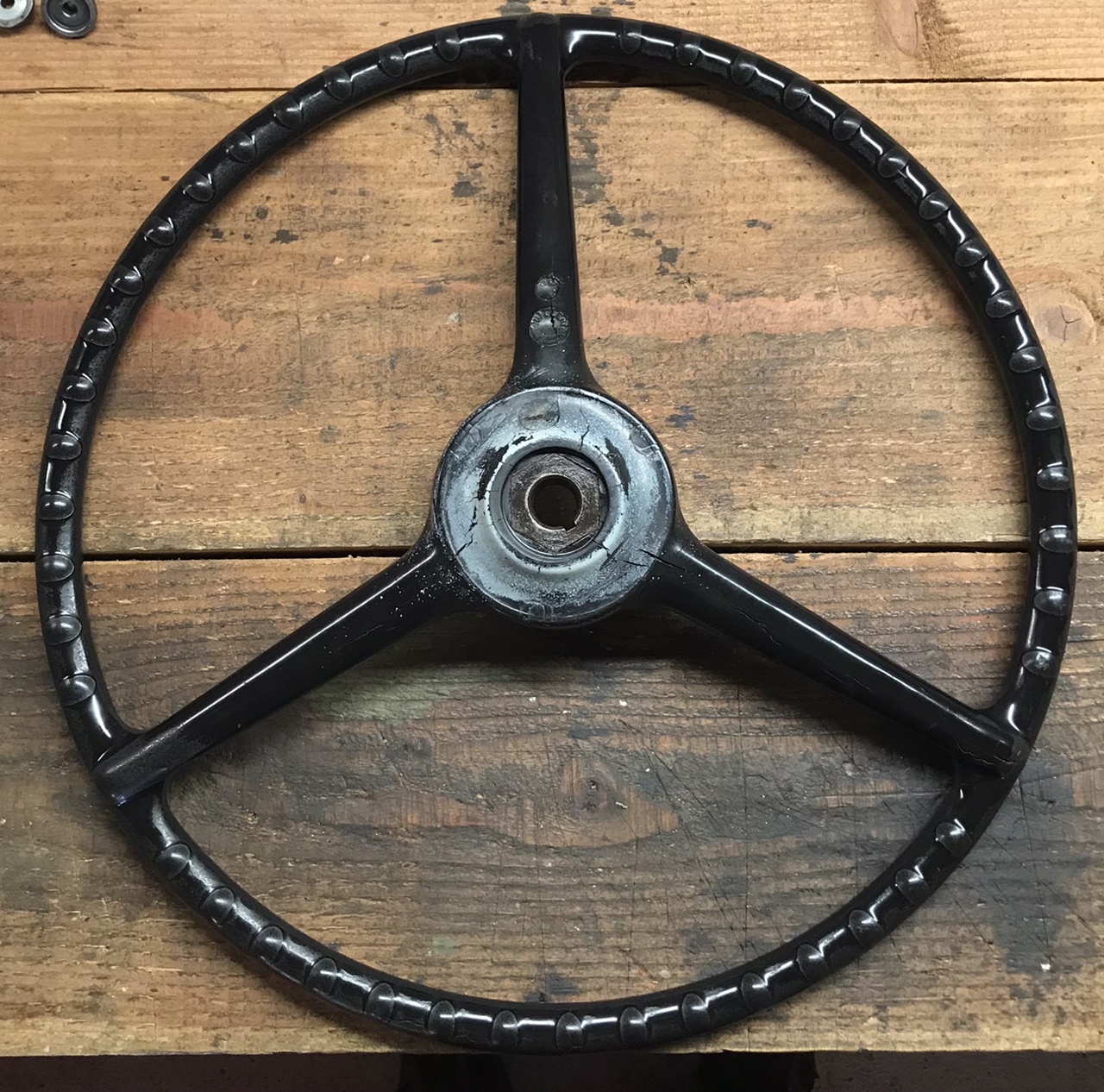 2/ Mettre un volant d’époque provenant d’un « donneur » (FF30DJ), récupéré avec le support et la colonne de direction.