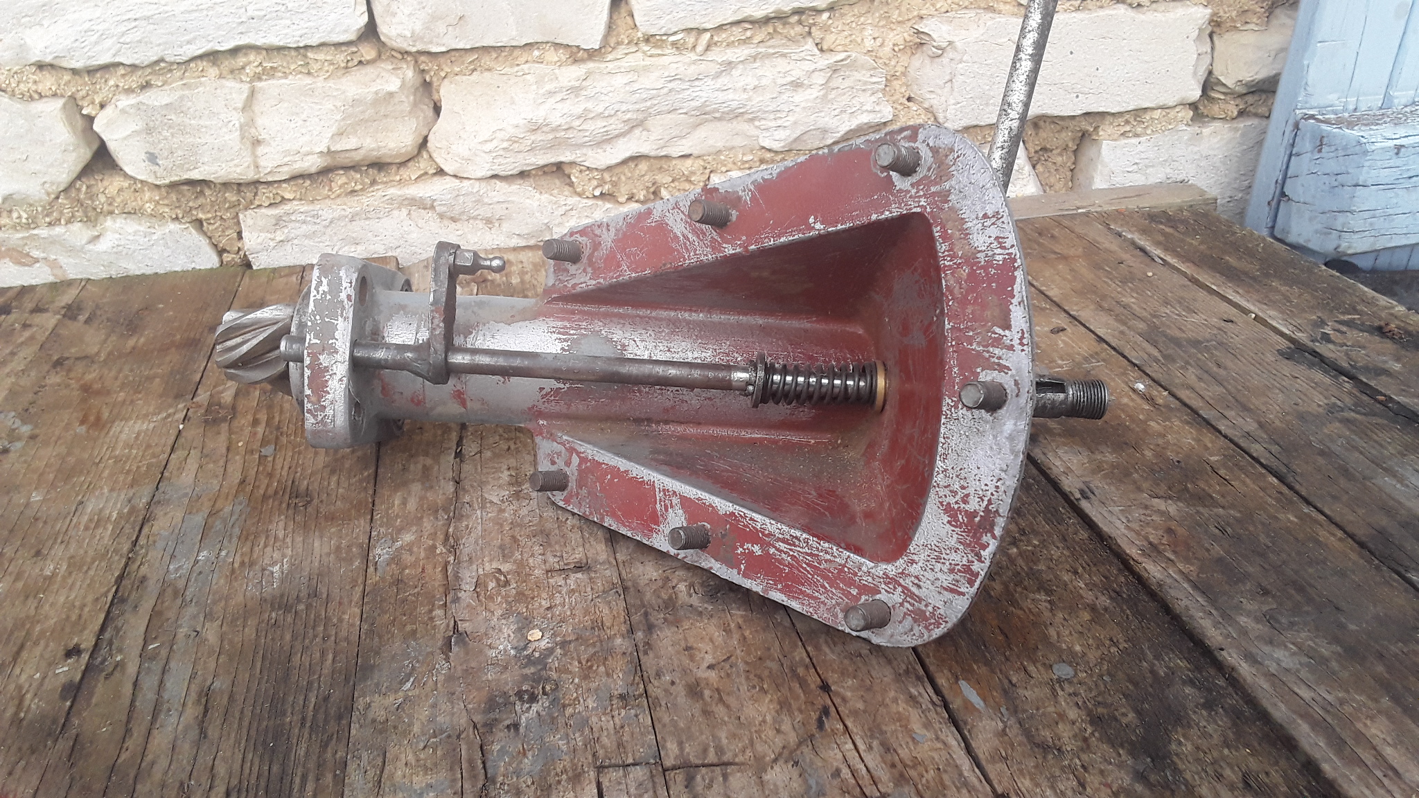 Ensemble carter/colonne vient d'un TEF 20 Harris Ferguson St Denis. Le levier est monté avec un accouplement rotule pour La tringlerie régulateur, sur mon TEA20 COVENTRY pas de rotule, patte plate avec boulon/écrou.
