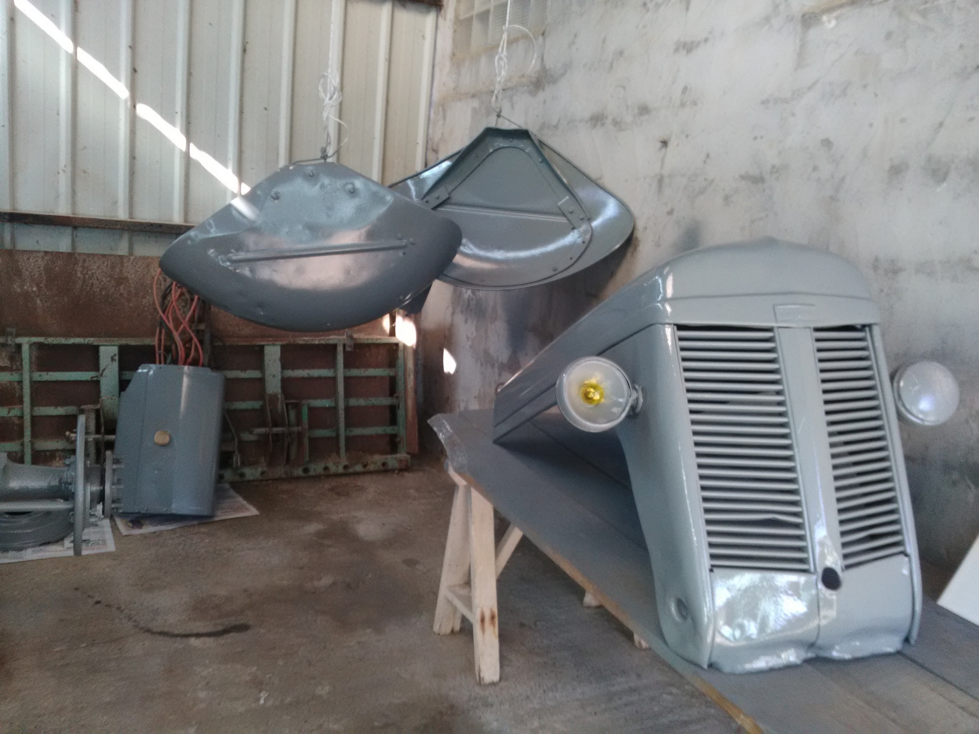 La recherche d'un capot m'a conduit dans le lot mais pas décu du voyage; un peu cabosser en bas mais pas trés grave il faut garder le coté ancien :lol: , et des ailes du côté de Lannemezan, une semaine de congés passer à le décaper a l'aide d'une sableuse et ponçage ensuite pour éliminer l'oxydation, démonter toute les piéces pour nettoyage et ponçage avant la sous couche.