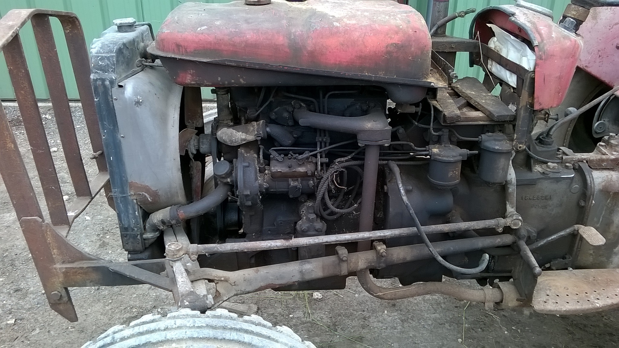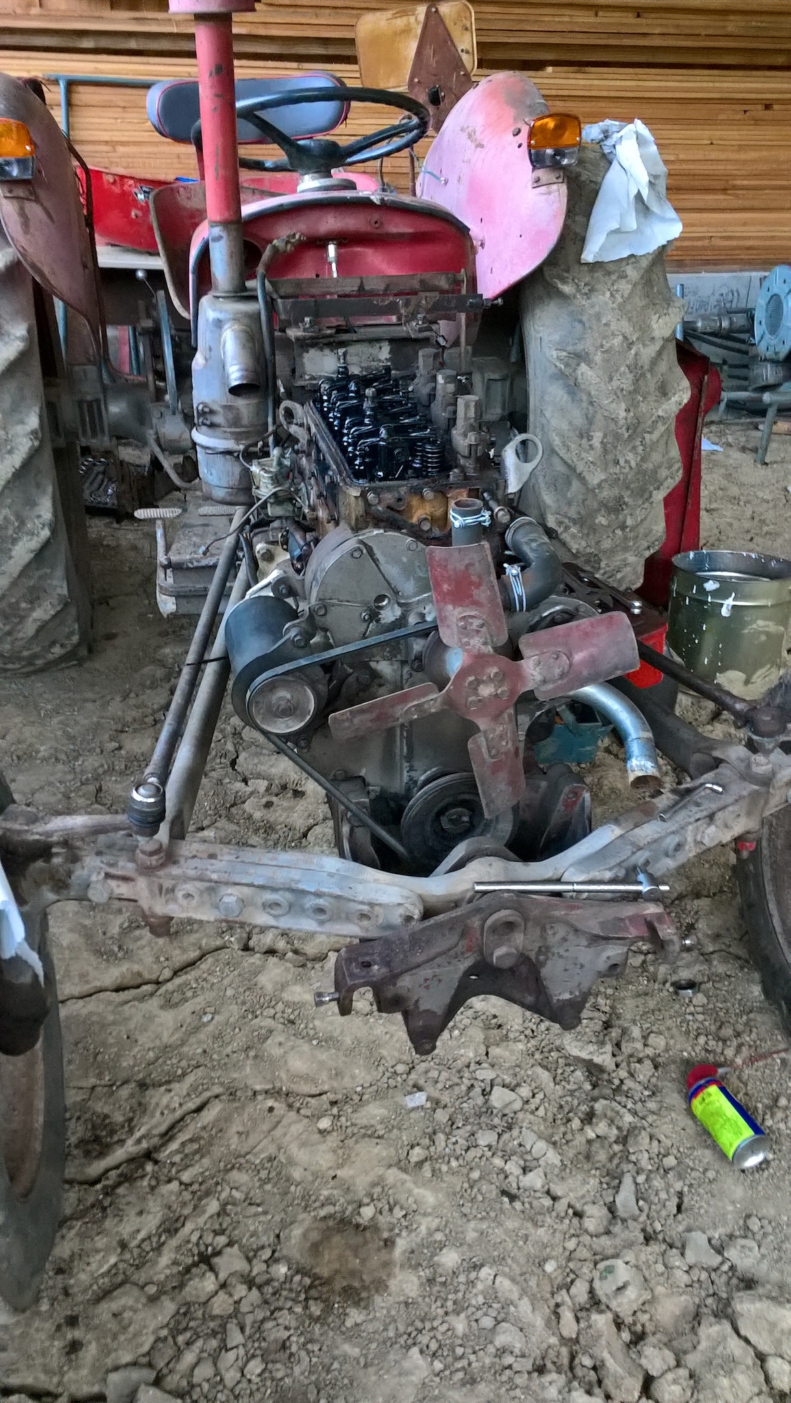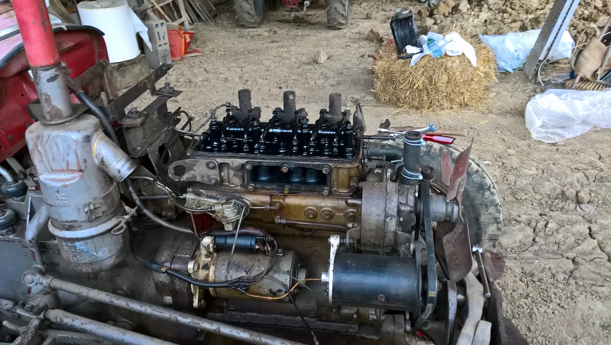 bref maintenant que le plus (sois disant) dur est fait fait j'ai commencé à démonter le réservoir pour le nettoyer, mais avant il à fallu le vidanger, j'ai récupéré environ 15l de fioul agricole qui est à filtrer et à passer avec du blanc, j'ai changé 1 filtre à GO mais il m'en reste un à changer mais je ne l'ai pas encore acheté, j'ai également démonté le radiateur, qui est une passoire donc à changer, ensuite j'ai démonté la pompe à eau, elle n'a pas de jeu, il me reste à démonter le thermostat, voir si tout est en bon état, changer toutes le durites, une vidange moteur et pont, pour le moteur je vais mettre de l'huile de vidange pour le banc d'essai voir si tout va bien, si y'a pas de gas oil qui passe dans l'huile,...