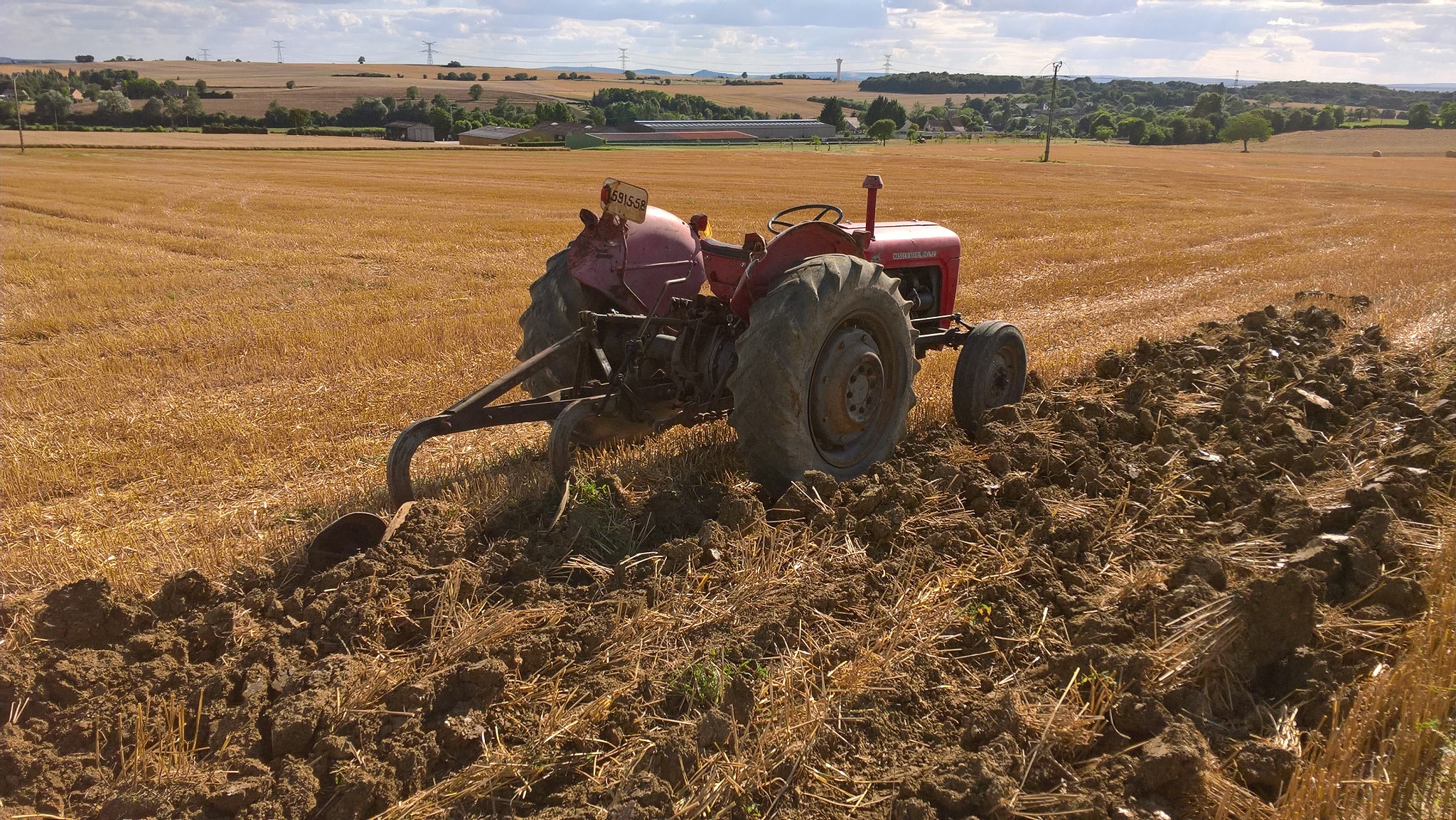au labour bien sûr, comme vous le voyez les pneus sont lisses mais ça n'empêche pas qu'il adhère ! yeaaa et surtout pour voir ce que le perkins a dans le ventre : résultat, il tient bien la route yeaaa yeaaa