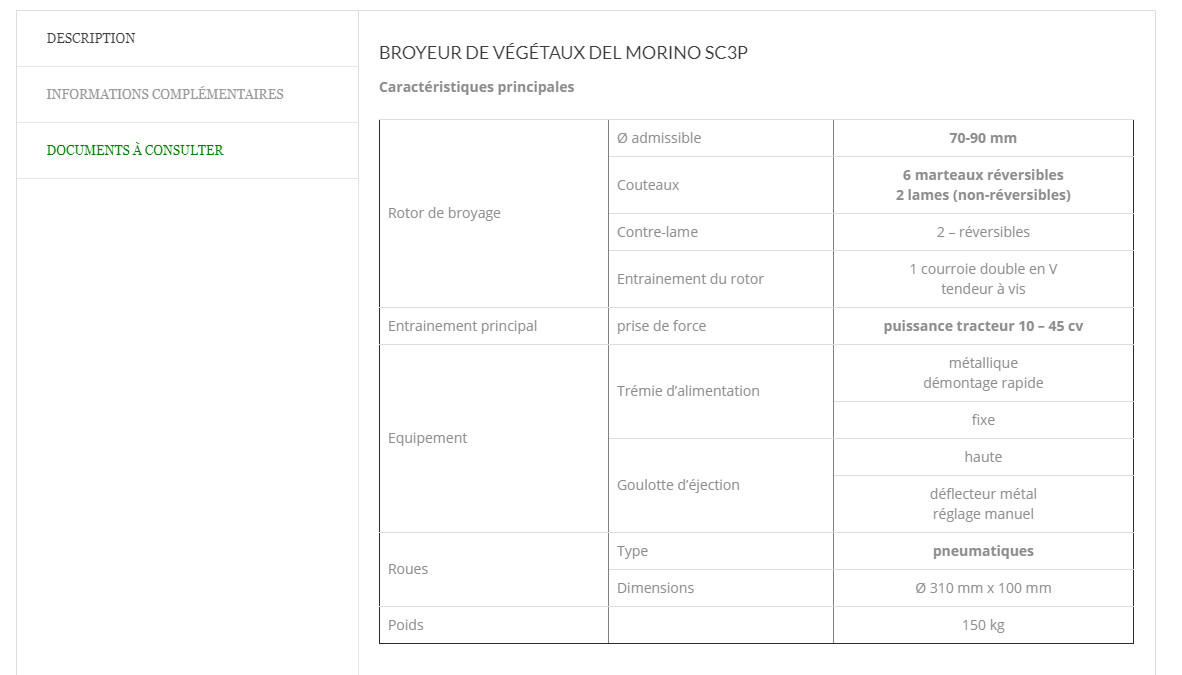 Ce broyeur fonctionne sur une prise de force, il peut broyer jusqu'à 7-9 cm de diamètre.