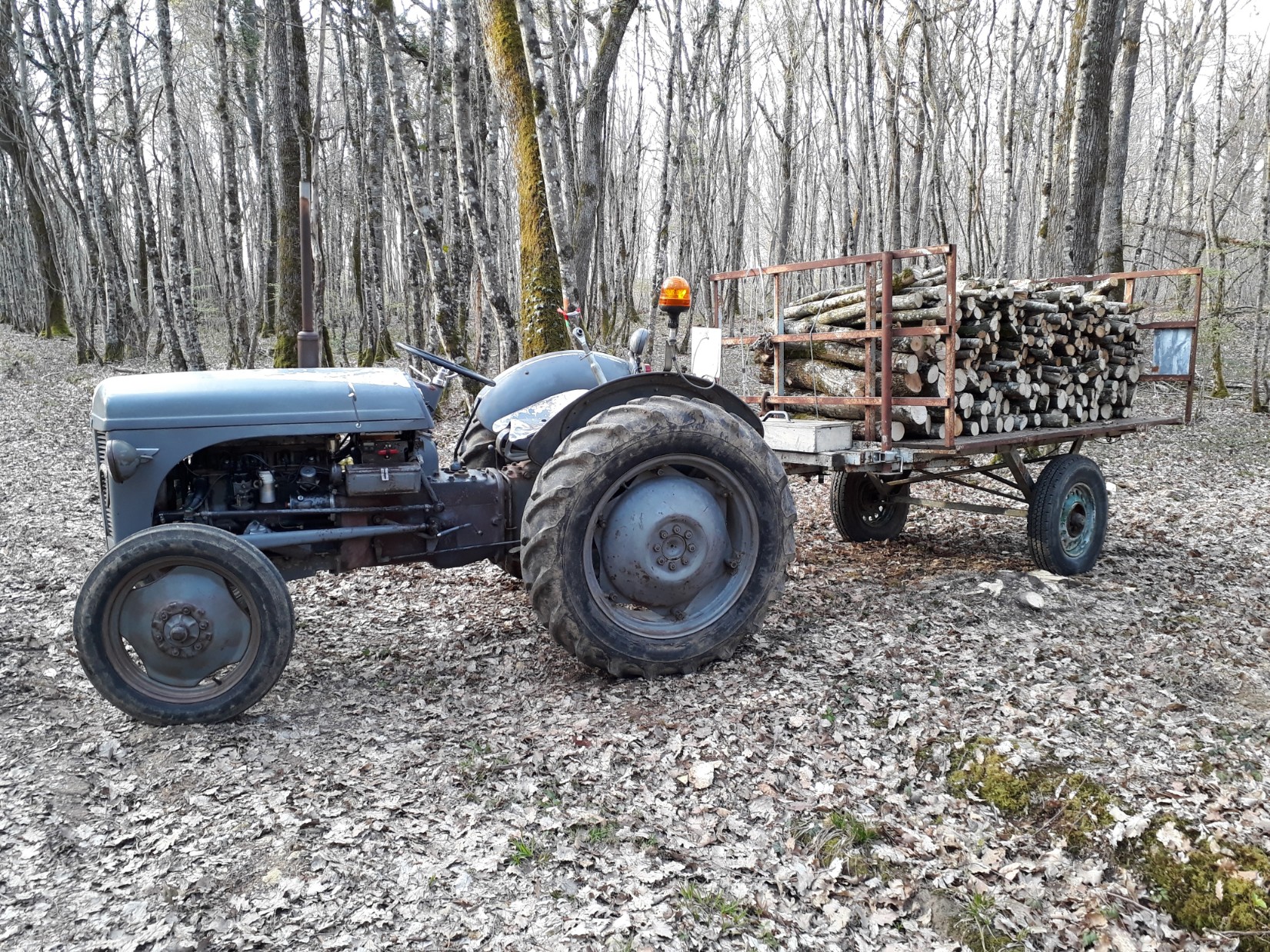 Après réfection de l'allumeur Lucas, le fergie est reparti au travail. Débardage fait pour une allée dans les parcelles pour prochain affouages de la commune têtes de chêne et hêtre