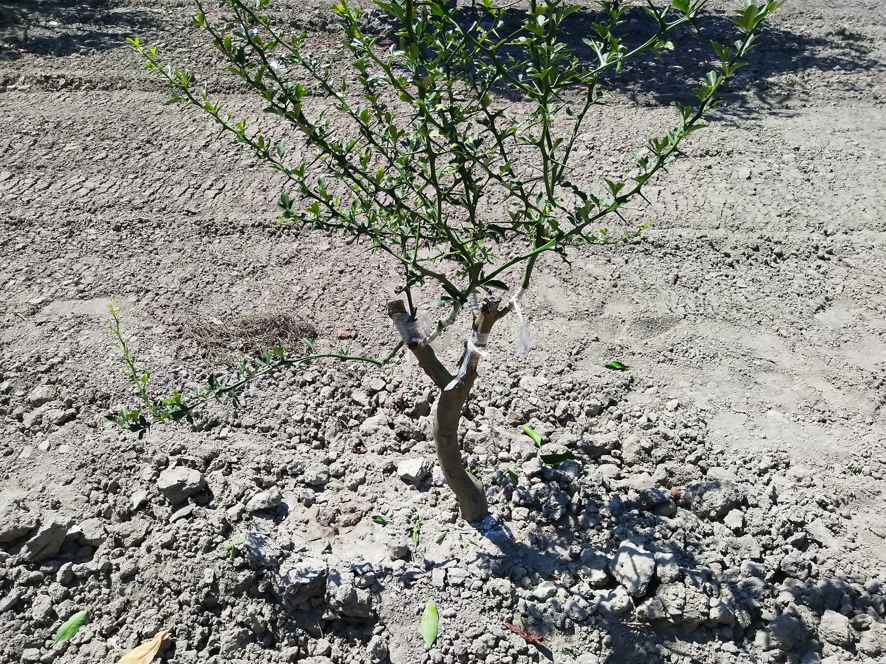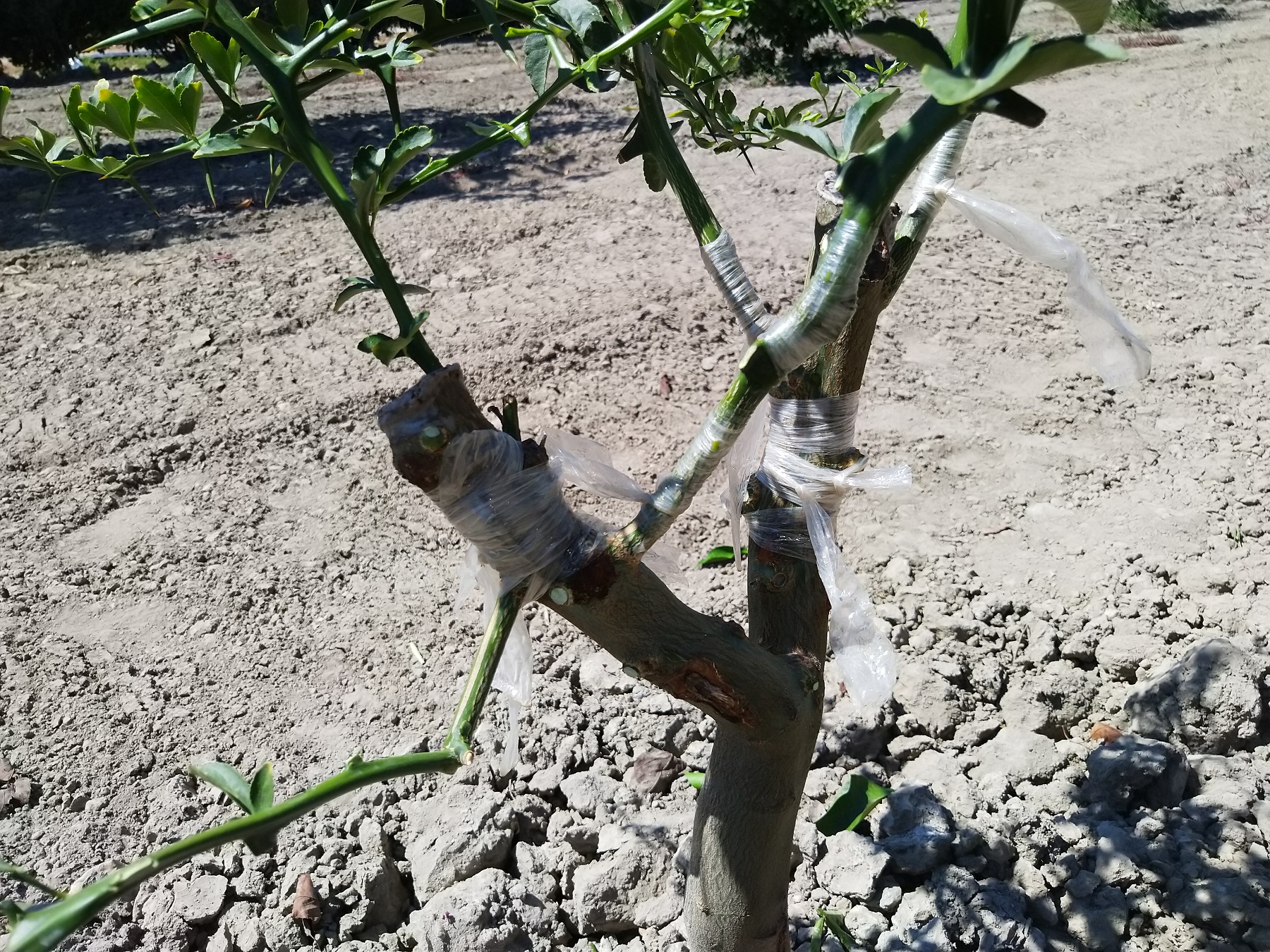 Mais je me suis rattrapé , car j'ai également greffé un agrume sauvage (Poncirus trifoliata) avec d'un coté un orangé "navel" et de l'autre un mandarinier Satsuma . Le mandarinier est trés resistant au froid beaucoup plus que l'oranger navel. Et le poncirus et le seul agrume qui perd ses feuilles en hiver donc trés resistant au froid lui aussi ! Une belle association pour cultiver des agrumes en France dans des régions "clémente" bien sur !