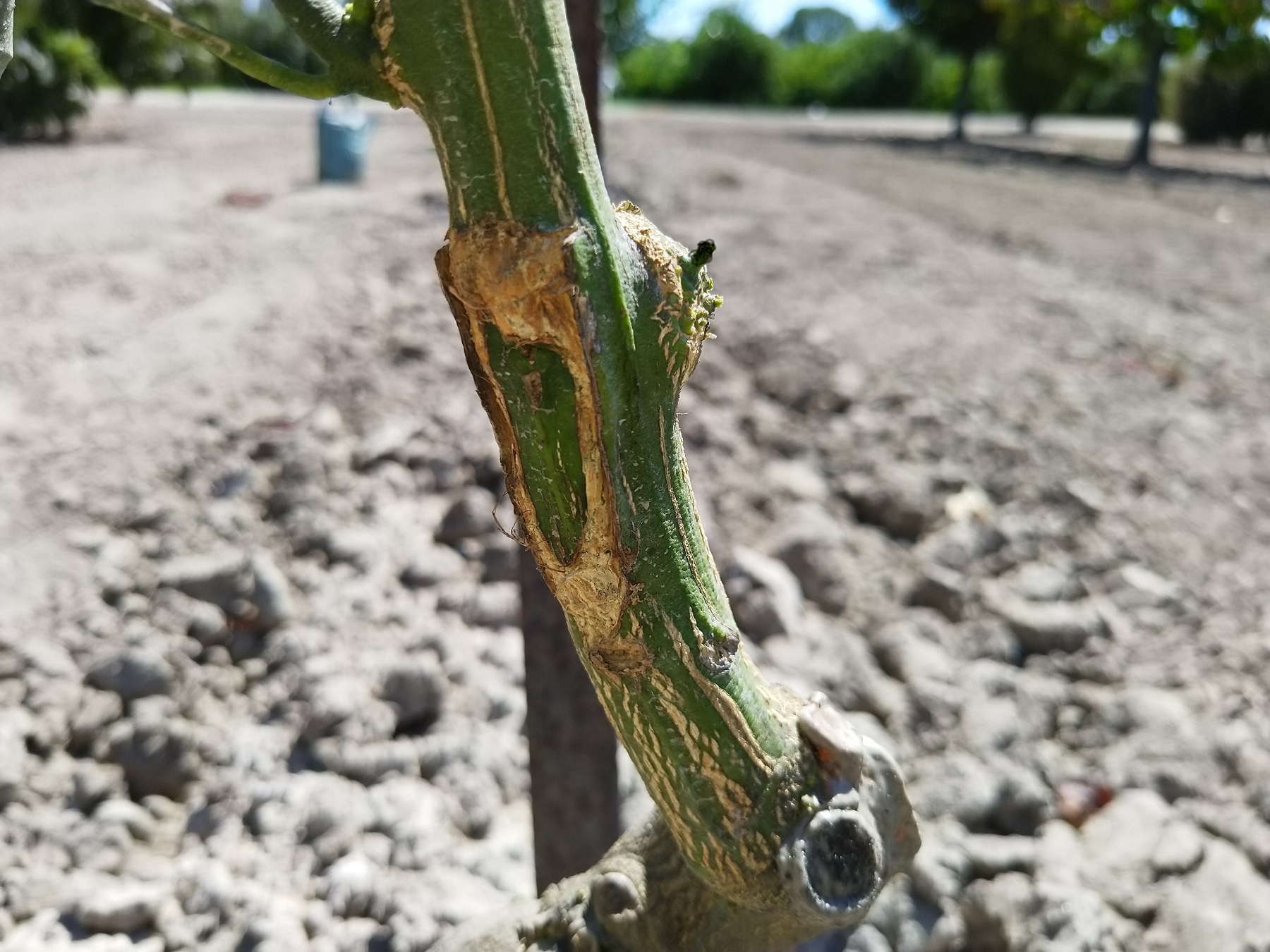 Et voici pour finir un oeil d'un clémentinier variété Corse gréffé au printemps et qui aurait du démarré a la suite , mais hélas non , j'ai donc rabattu sévèrement l'arbre pour l'obliger a démarré dans les jours qui vienne j'espère jusqu'à l'automne ou hiver