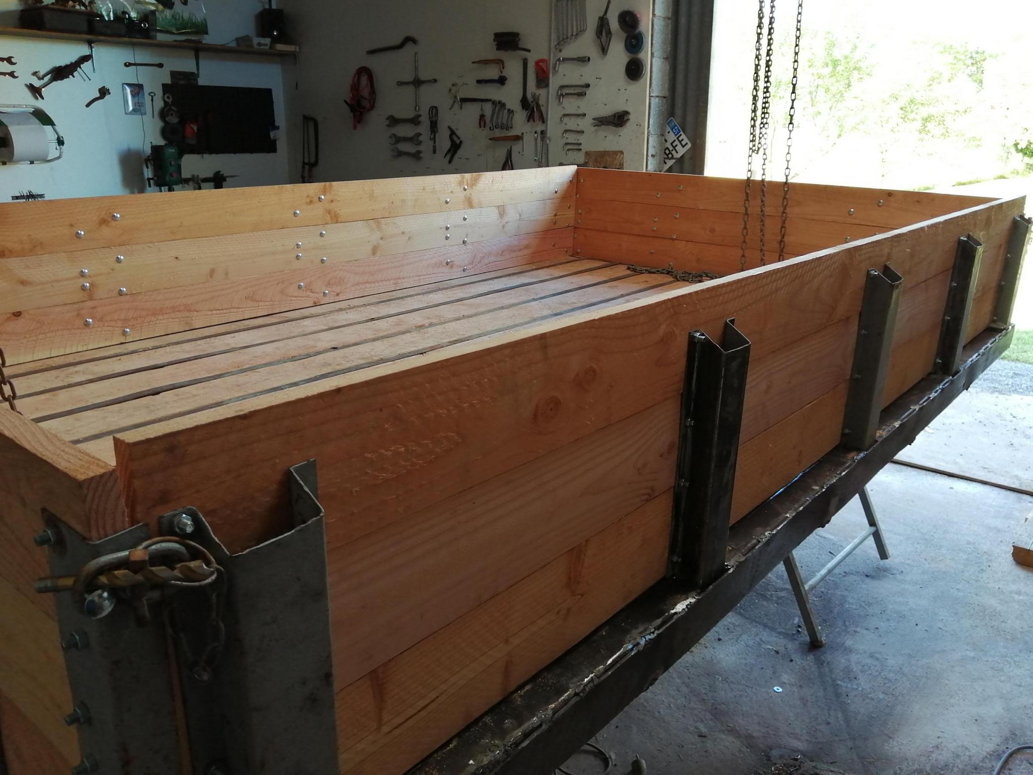 Montage du plancher et des ridelles a blanc avant traitement pour le plancher et peinture pour les ridelles