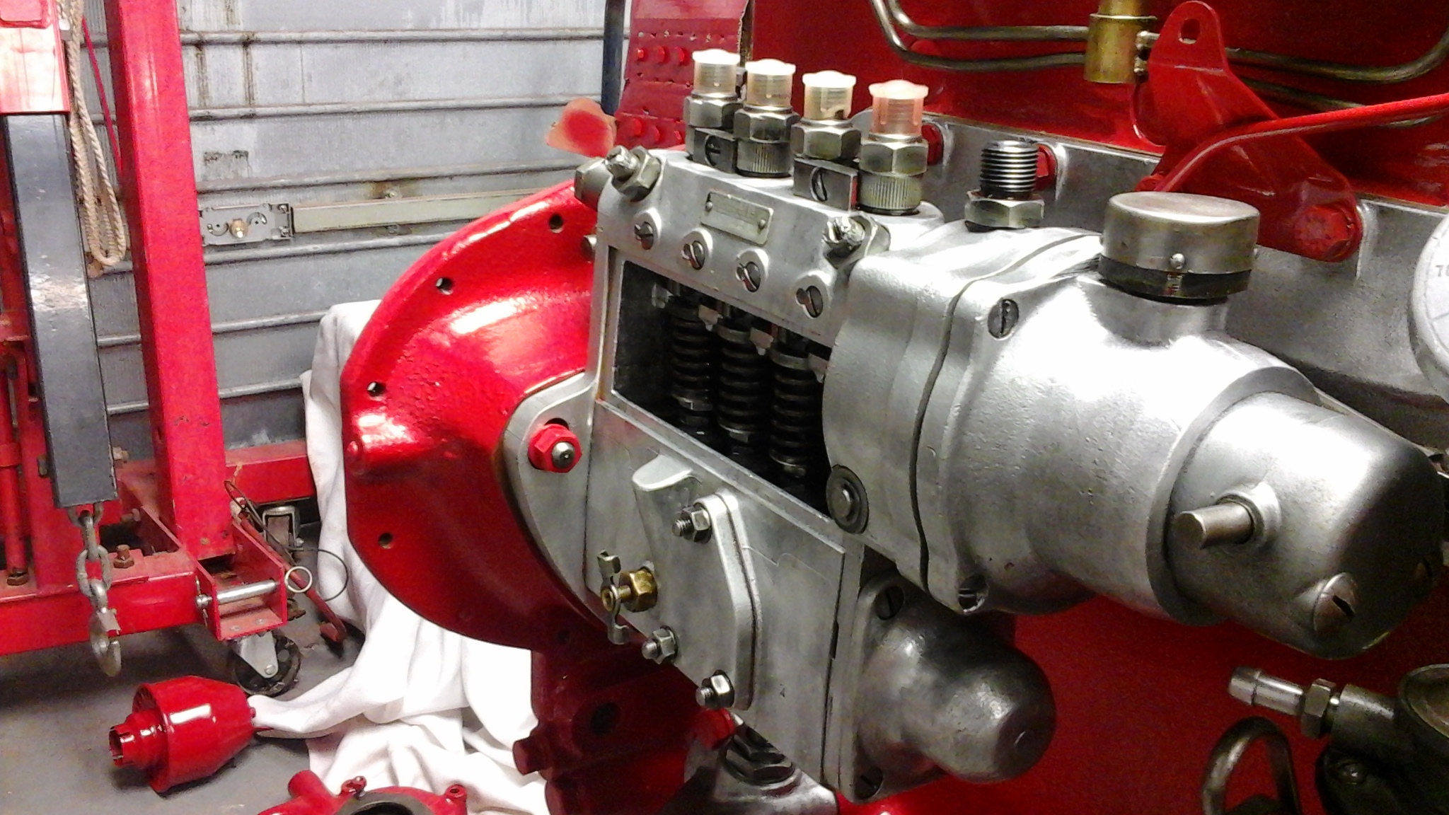 Puis j'installe un durite translucide sur le refoulement du premier piston que je remplis de gazoïl, au préalable j'avais rechercher le début de mouvement du premier piston par la tape de visite .