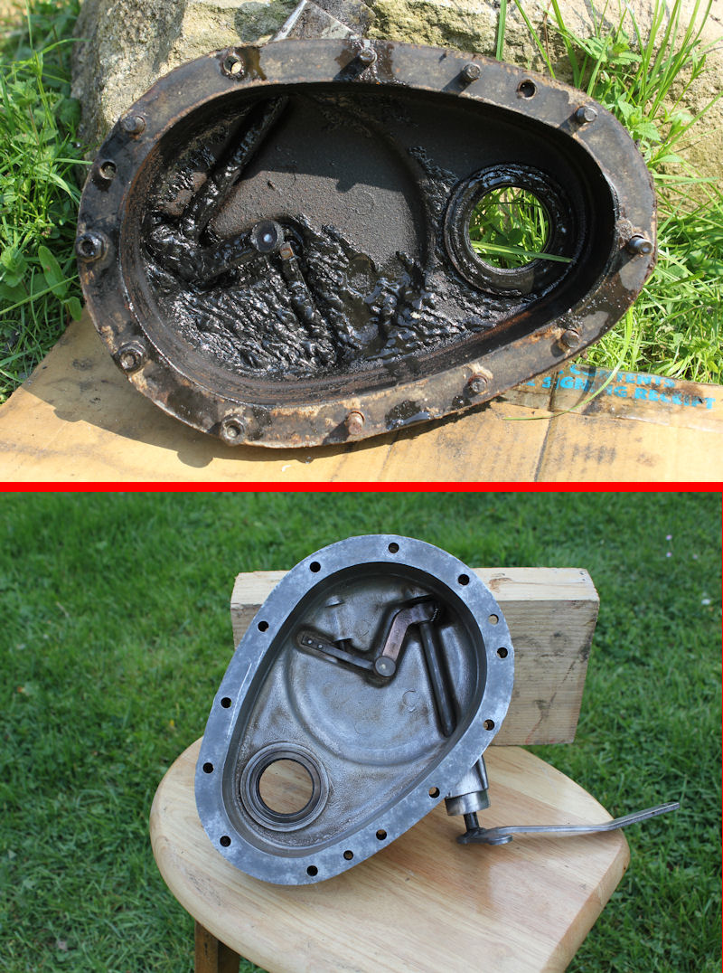 Avant et après dégraissage, brossage ( à la main pour ne pas risquer de rayer manetons et tourillons) et huilage.