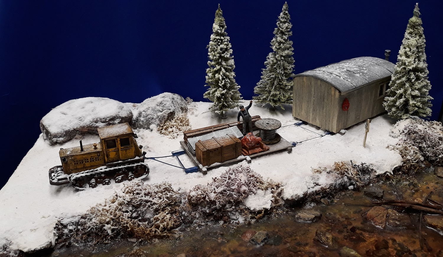 Donc j'ai conçu le petit chalet , le traineau de transport en bois et le décor