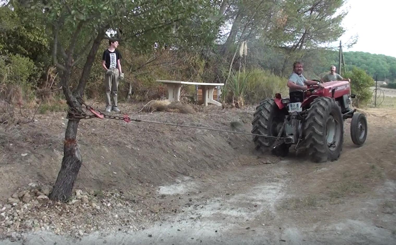 Non, je ne pense pas qu'il risque vraiment de cabrer le tracteur. Le câble est attelé plus bas que les arbres de roue arrière .
