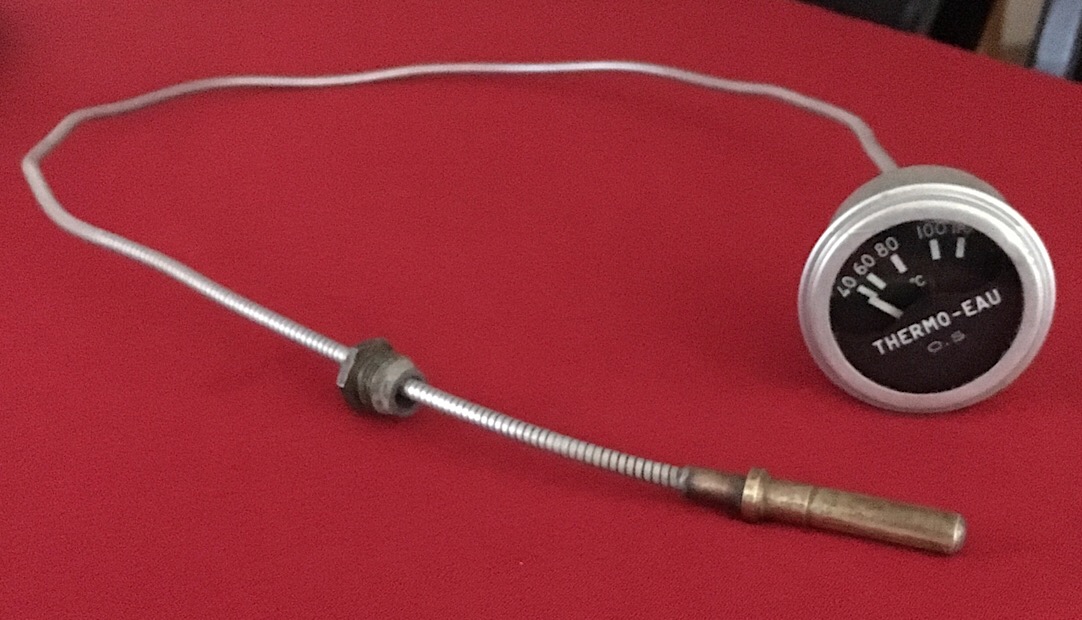 J’ai aussi trouvé un indicateur de température O.S avec tube capillaire pour un très bon prix (20€). Il devait être sur une jeep ou un truc comme ça. Petit nettoyage et mise en peinture pour protection et couleur. Reste plus qu’à remonter tout ça!