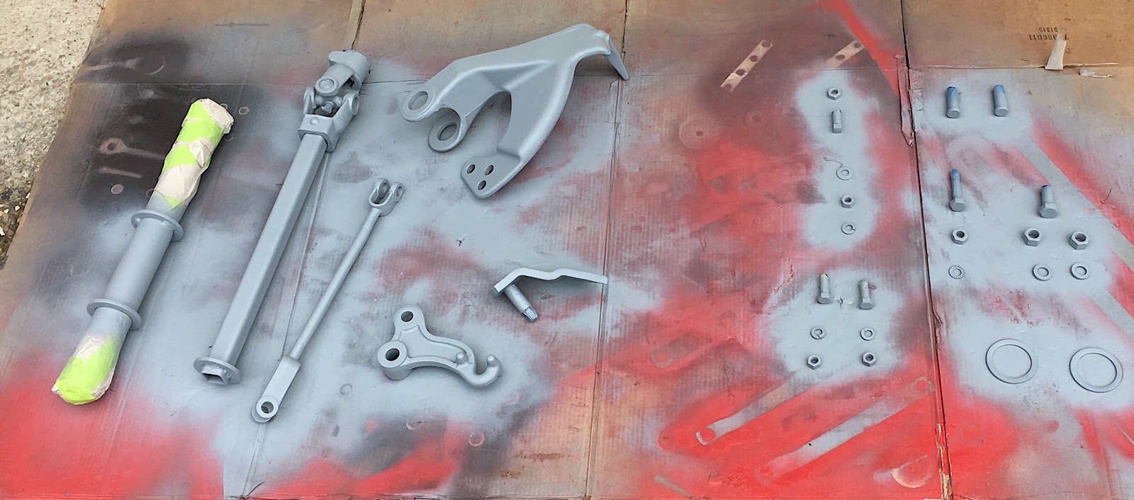 Mais bon, à nouveau un long dégraissage à l’essence F, décapage à la brosse métallique et à la toile émeri et friction à l'acétone avant apprêt, peinture et tout revient comme neuf. Je pense que j’ai traité 70% de la faucheuse à présent. Le remontage n’est plus très loin!