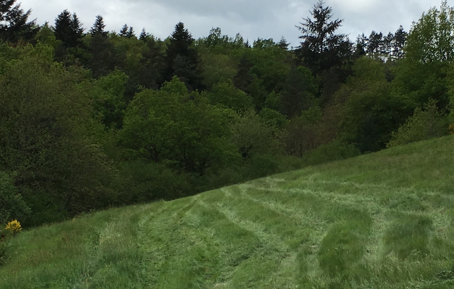 C’est cela qui a mis un terme à la séance de fauchage. Dommage car je venais juste de piger les réglages. La technique pour faire ça bien n’est pas simple du tout, lorsque l’on découvre ça seul. Ma barre de coupe était un peu haute (sabot intérieur mal réglé) et ne piquait pas assez. J’ai réglé tout ça, mais n’ai pas pu tester. Comme lu ici et là, le plus pénible reste la hauteur inconstante de la barre de coupe. Il faut que je regarde pour trouver un système avec des chaînes pour « poser » l’attelage à la bonne hauteur. Après, ça flotte bien, le pré est très propre, sans la moindre pierre, donc de ce point de vue ce n’est pas trop compliqué.