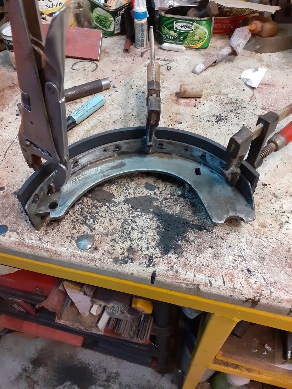 Aujourd’hui je vais remonter l arbre de la roue droite.Après je remet les garnitures sur les mâchoires.