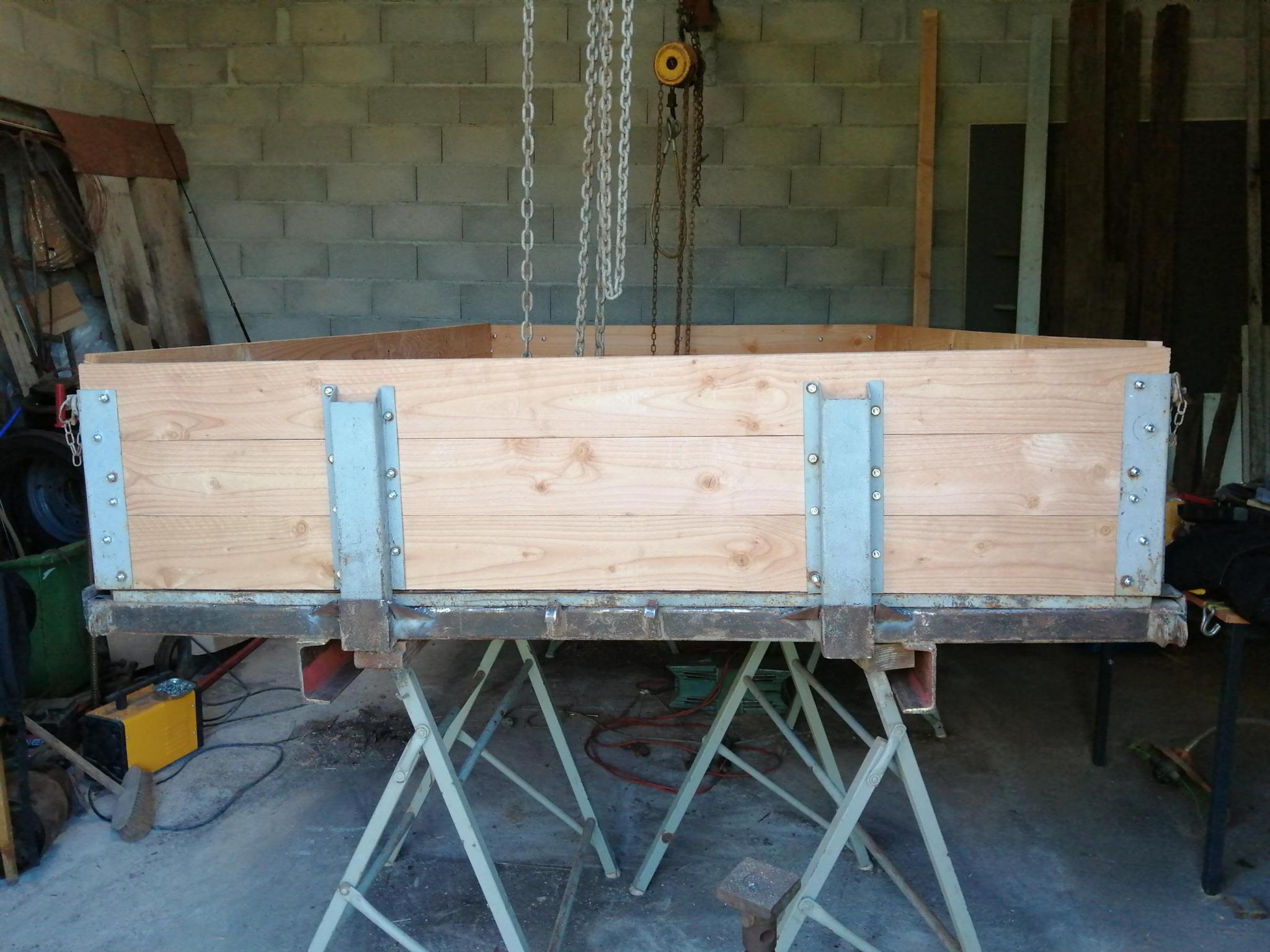 Montage du plancher et des ridelles a blanc avant traitement pour le plancher et peinture pour les ridelles