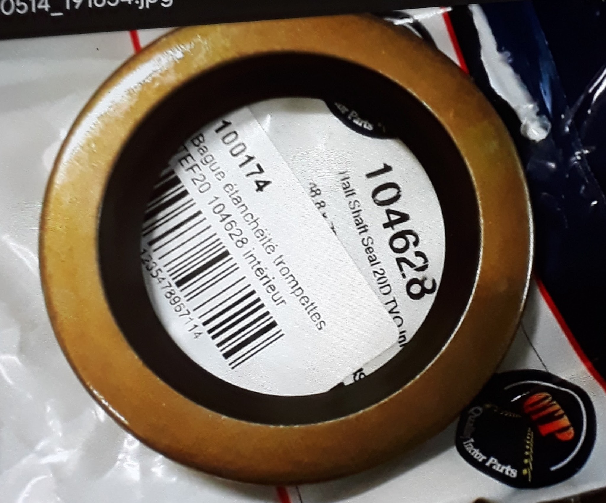 Retrouvé le joint spi commandé, joint à lèvre avec ressort. Se monte sur la trompette avec le ressort côté huile.