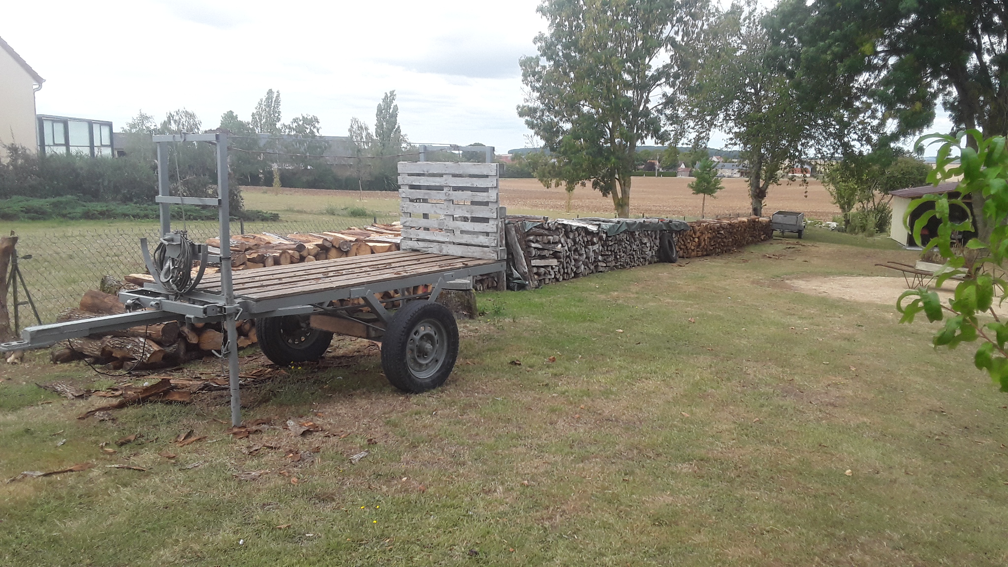 Chargement, facile d'accès env 2.5 à 3 stères sur la remorque, c'est pas loin et temps très sec, tout est accessible facilement.