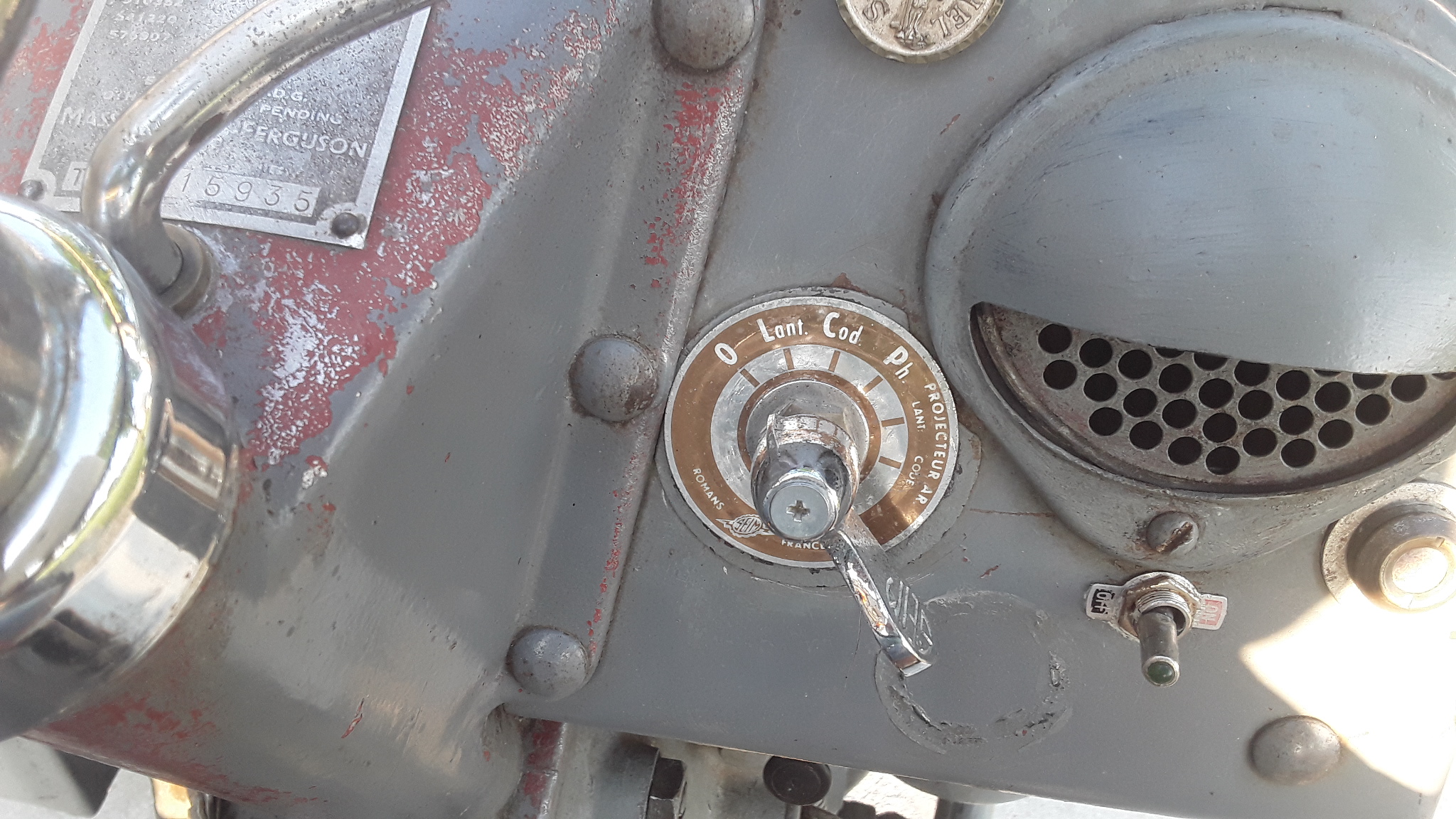 La plaque qui etait monté d'origine sur le ferguson. J'ai dû mettre une rondelle pour l'adapter au commutateur PONY