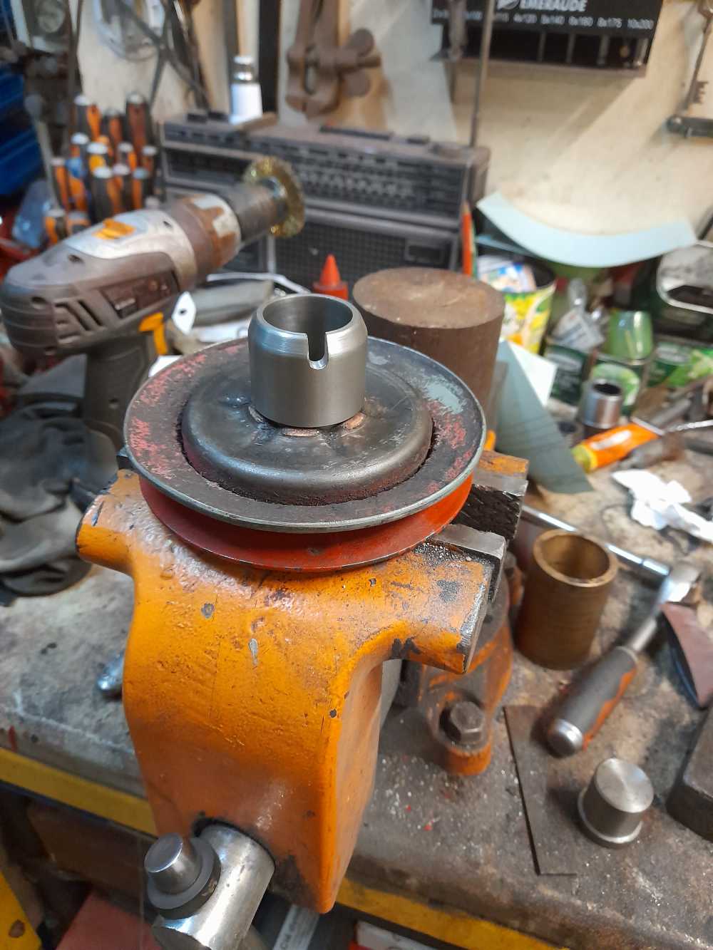 j ai refais la bague de la poulie du vilebrequin, il reste juste a la pointer avec 4 points de soudure.