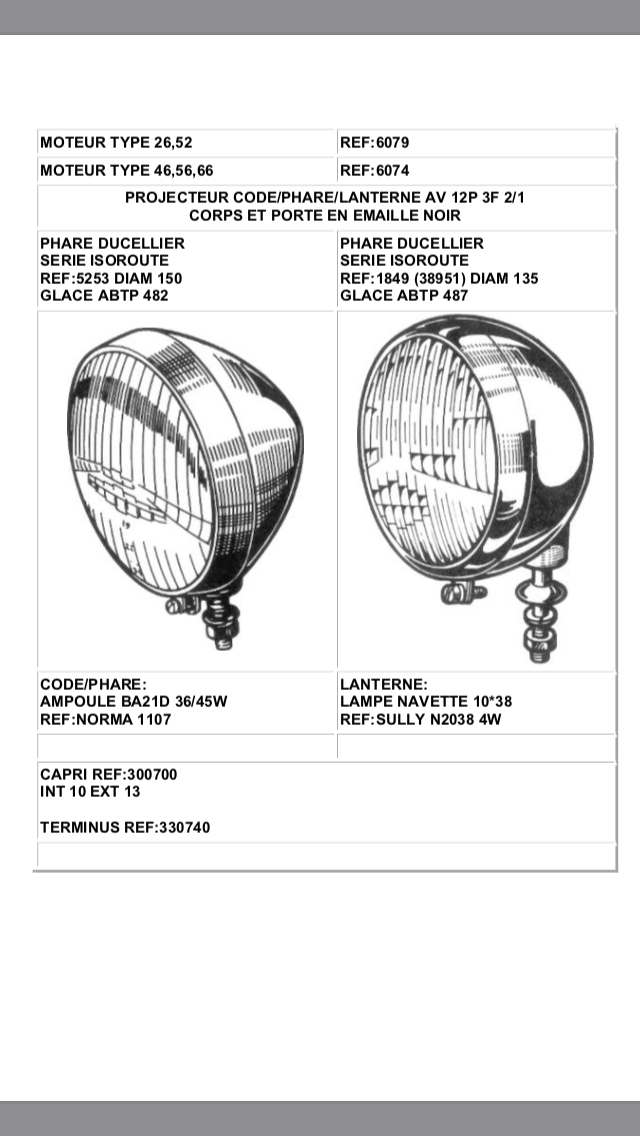 Je suis en train de regarder pour remonter l’éclairage sur mon ff30. J’ai trouvé, montée dessus, une paire de Ducellier Isoroute avec un verre ABTP 482, à l’air ancien. En recherchant un peu, je trouve que ce sont des phares qui étaient utilisés par Citroën sur les 2 cv dans la seconde moitié des années 50, ainsi que sur certains tracteurs (Vendeuvre par exemple). Rien au sujet des Ferguson, bien que ces phares soient contemporains des ff30.