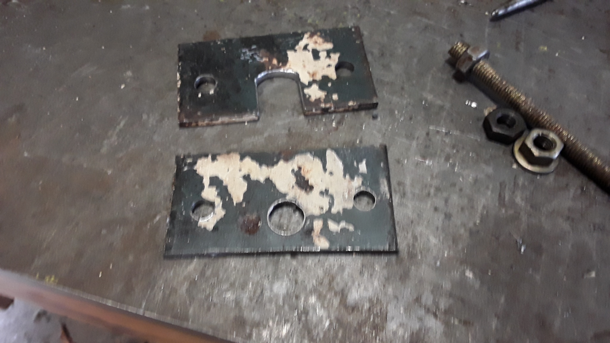 Les plaques en place pour comprimer le ressort, une fois serré, on sort l'anneau par le trou de la plaquette du bout. Ressort puissant, les plaques se plient, à faire dans un métal plus solide. En renforçant avec une corniere soudée, ça devrait empêcher la courbure.. Suis pas un pro de la metallerie, l'important c'est que j'ai pu faire le changement de ce pignon :D