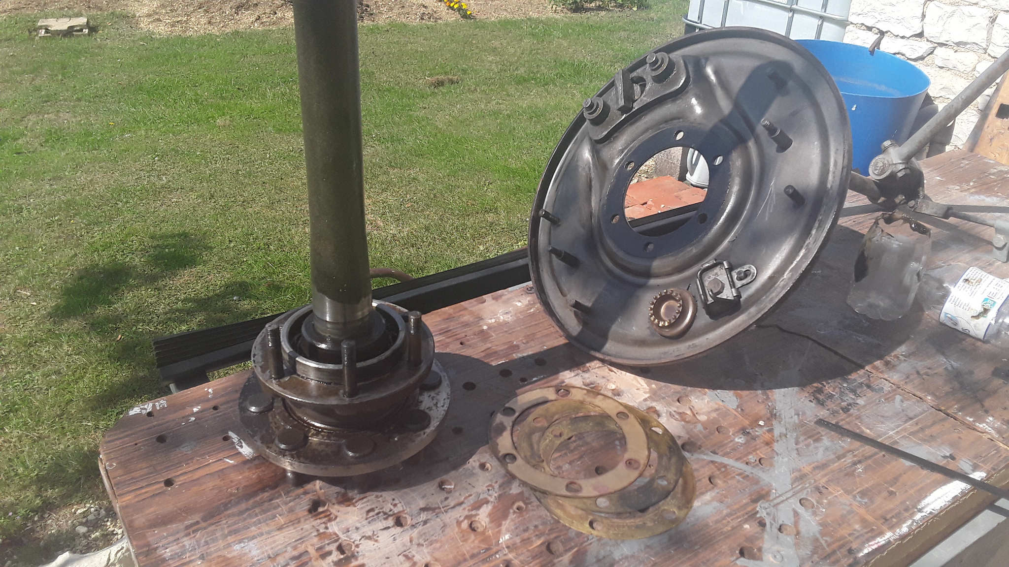 Les 2 joints spi huile sur trompette sont changés !! Garnitures freins huileuses, passées à l'essence et liquide freins, chauffées au pistolet air chaud pour voir si ça rejette du gras. Apparement nom, mais j'ai un côté ou une garniture est cassée, comme commande par 4 je vais tout mettre en neuf ! Facile de changer ces joints spi, par contre c'est crade de chez crade en graisse et huile mélangé, tu en mets et t'en mets partout lol Remis les joints de calage cuivre comme ils étaient, gauche 1 joint fin, droite 3 joints en 3 épaisseurs différentes. Profité de peindre l'intérieur des ailes roues et plateau de frein. Savait pas qu'il était si simple de remettre un joint spi sur trompette ! en passant, webmaster +1 bonne idée de garder le vieux joint pour enfoncer le nouveau. Me reste a regarnir les mâchoires, déjà fait il y a env 2 ans tant pis :cry: C'est les freins, faut que ça fonctionne nickel :D