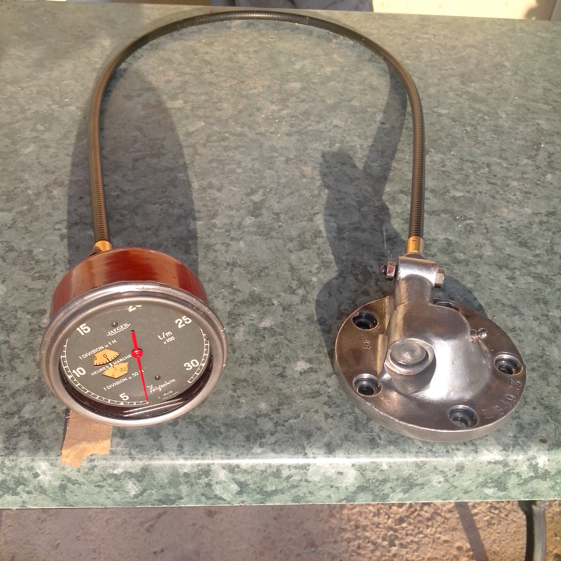 J'ai récemment vu sur eBay ou peut être aussi sur LBC un ensemble compteur pour tea20 comme celui proposé plus haut. Un pied avec renvoi d'angle à mettre entre la sortie moteur et l'allumeur, gaine et câble + le compteur. Matériel identique à celui d'origine. Mais le prix ! 350€ un peu cher pour ce que c'est, même si le cadran est assez complexe à l'intérieur. Sinon vu aussi ceux montés sur la poulie de dynamo, pas très esthétique et lecture seulement des heures sur cadran rotatif sur l'installation.