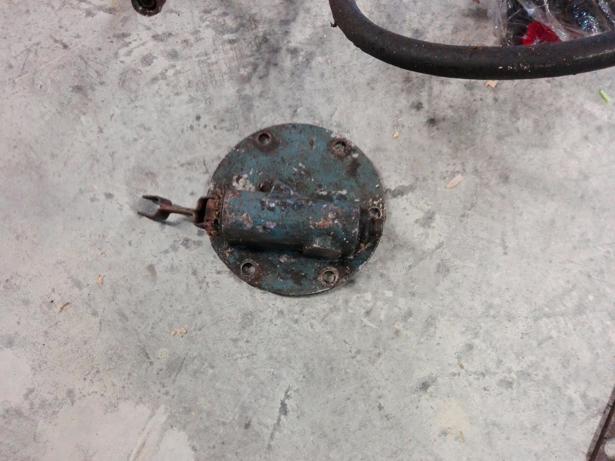 Par contre le fond du godet est à refaire. Il faudra tronçonner la partie malade et ressouder un morceau de tôle d'épaisseur équivalente.