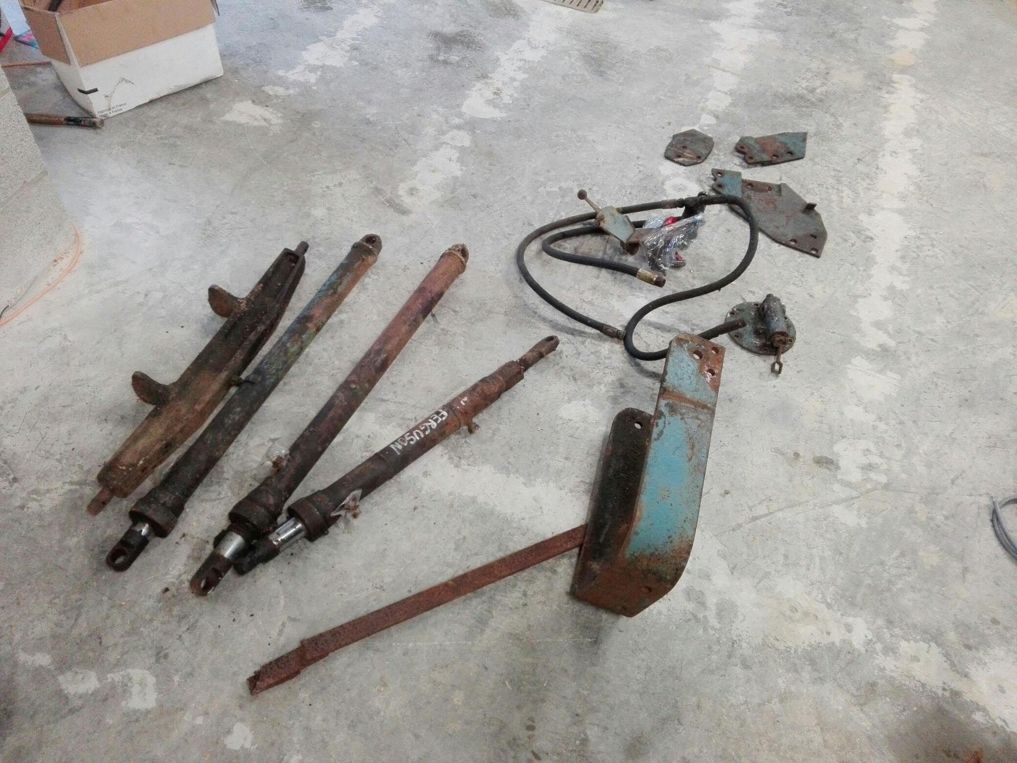 Je l'ai trouver complet. Il est équiper d'un bac et pas de la fourche. Il possède sa valve d'inversion pour faire monter ou descendre le chargeur ou bien pour faire benner le bac. Il a aussi sa valve d'arrêt qui se relie au secteur du relevage pour ouvrir ou fermer le circuit d'huile. Il me manque juste le pièce que le relie à celui-ci.