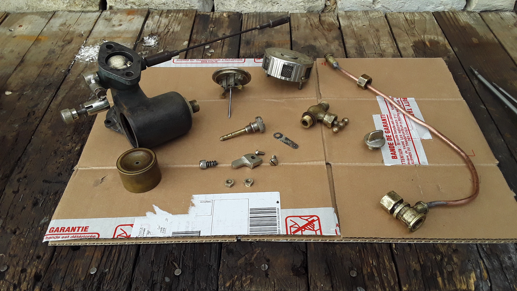 si l'extérieur est encore en bon état, l'intérieur moins bien. Beaucoup de rouille dans le circuit eau, les tiges filtées fixation de culasse et radiateur baignent dans l'eau du radiateur. Inutile de dire que la rouille a diminué de moitié la resistance de celles-ci. Voir si magnéto fonctionne. Démonté la culasse, vu le piston, apparemment pas de blem, calaminé, mais cylindre pas abîmé, monte et descend sans forcer ni trop de jeu. Pour l'instant le remet au propre et le prépare pour la remise en route. Si ne tourne pas, je pourrais toujours le revendre pour pièces et au minimum récupérer mes 60€. J'en suis pas là, vais voir tout de même à essayer la mise en route, mais sans frais. Bon week-end à venir