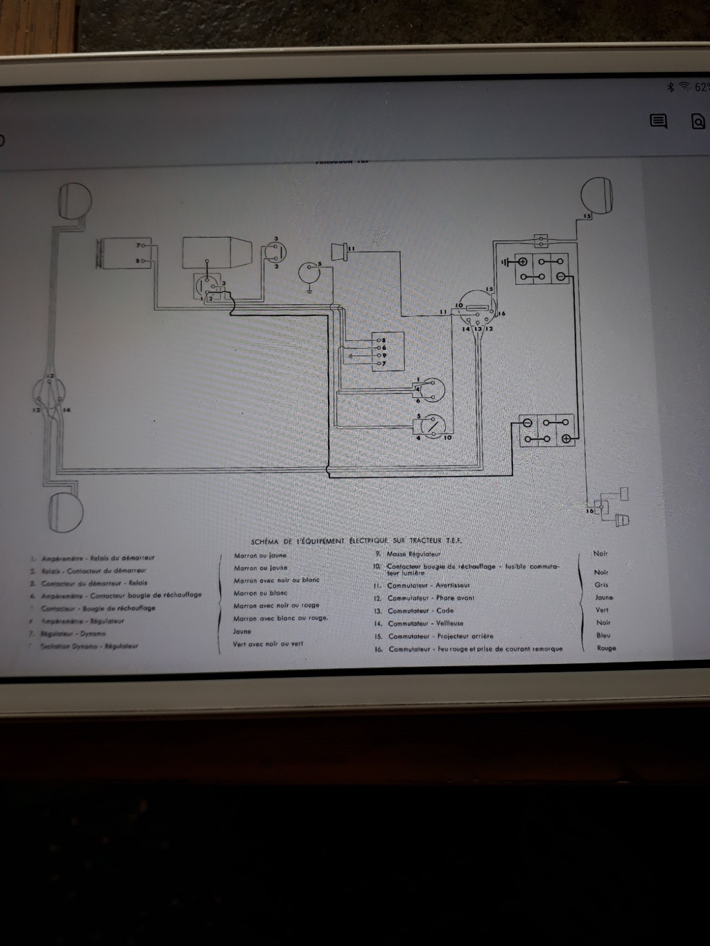 Bonjour Patrick-ma, désolé de ne pas t' avoir remerçié plus tot mais je n'étais pas revenu sur le forum et merci pour le schéma, grace au schéma de patou18 j' ai pu redémarrer mon tef 20 mais il y a quelques jours je suis allé charruer au jardin et le tracteur a calé impossible de repartir. Maintenant le démarreur patine et je l' ai déposé les dents sont bien abimées du coup je me demande si je peux monter un démarreur qui fonctionne avec une clé, comme ça plus besoin de commander avec le levier de la boite mais est ce possible ? Merci de vos réponses et bonne soirée à tous les membres du forum