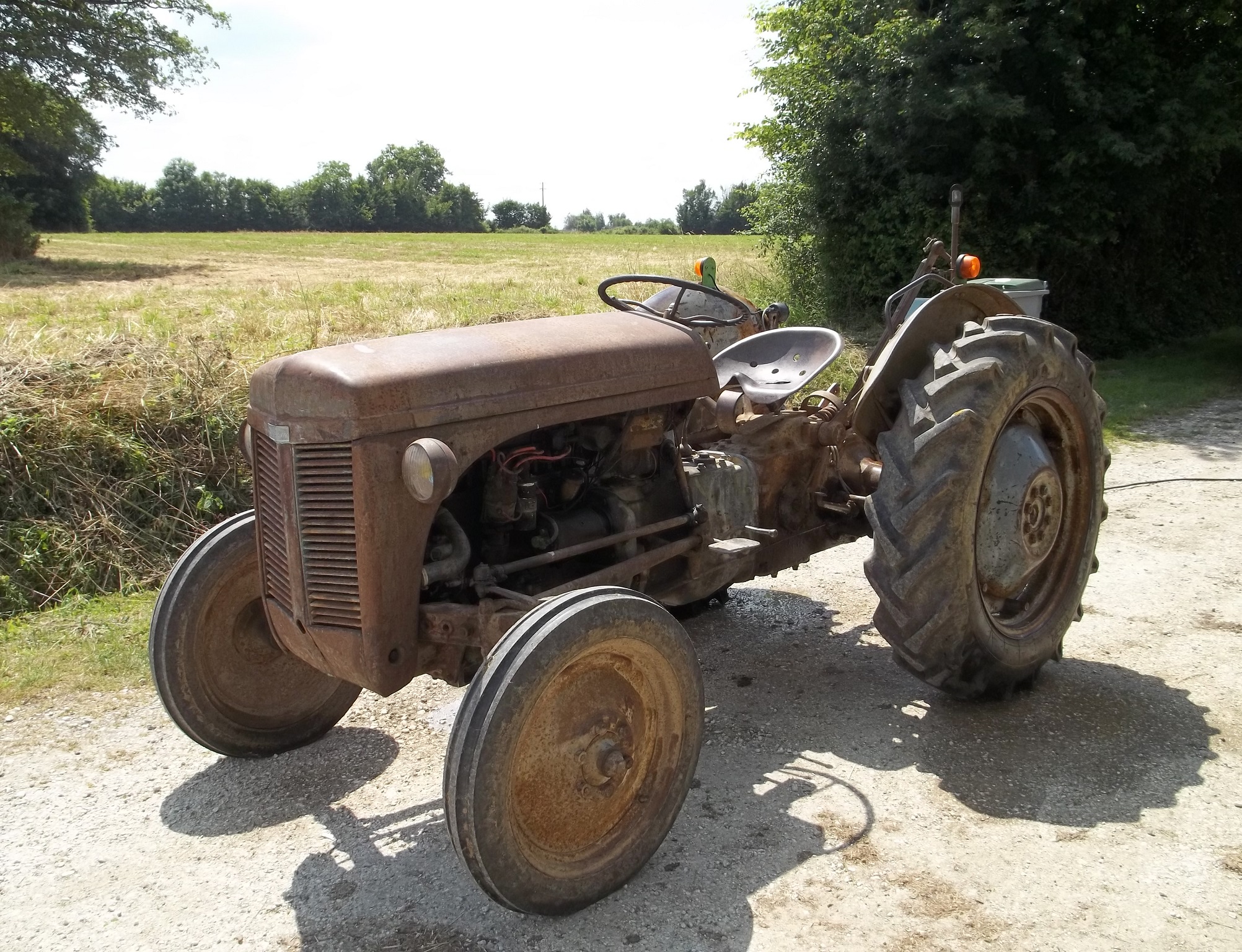 il vient de Charny dans l' Yonne, mais lui était tournant et "restauré" ou bien retapé parce que la peinture est a revoir, sinon le moteur a été refait, mis aux normes de circulation. Mais un beau jour en faisant du bois, le démarreur présentait quelques signes de faiblesse jusqu’à ce que un ou deux démarrages après... ohhh de la fumée qui sort du démarreur, verdict : Démarreur grillé mur :triste: .Après avoir regardé longuement sur internet pour des neufs en faisant attention que ce soit de contacteurs au levier de vitesse et surtout les prix, une petite visite duboncoin est nécessaire et là magique ou un coup de bol un démarreur qui paraît en bon état mais petit bémol : à Rouannes, le déplacement s'impose, petite vérification... il est presque neuf !! Et le moment de l'accord sur le prix : 40€ ni une ni deux l'affaires est conclue. Après ce souci là réglé en voilà un autre : le relevage, quelques joints de la pompe hydraulique et tout repars cependant quelques problèmes persistent mais rien de grave. Une paire de pneus neufs et il est tout beau :rire:
