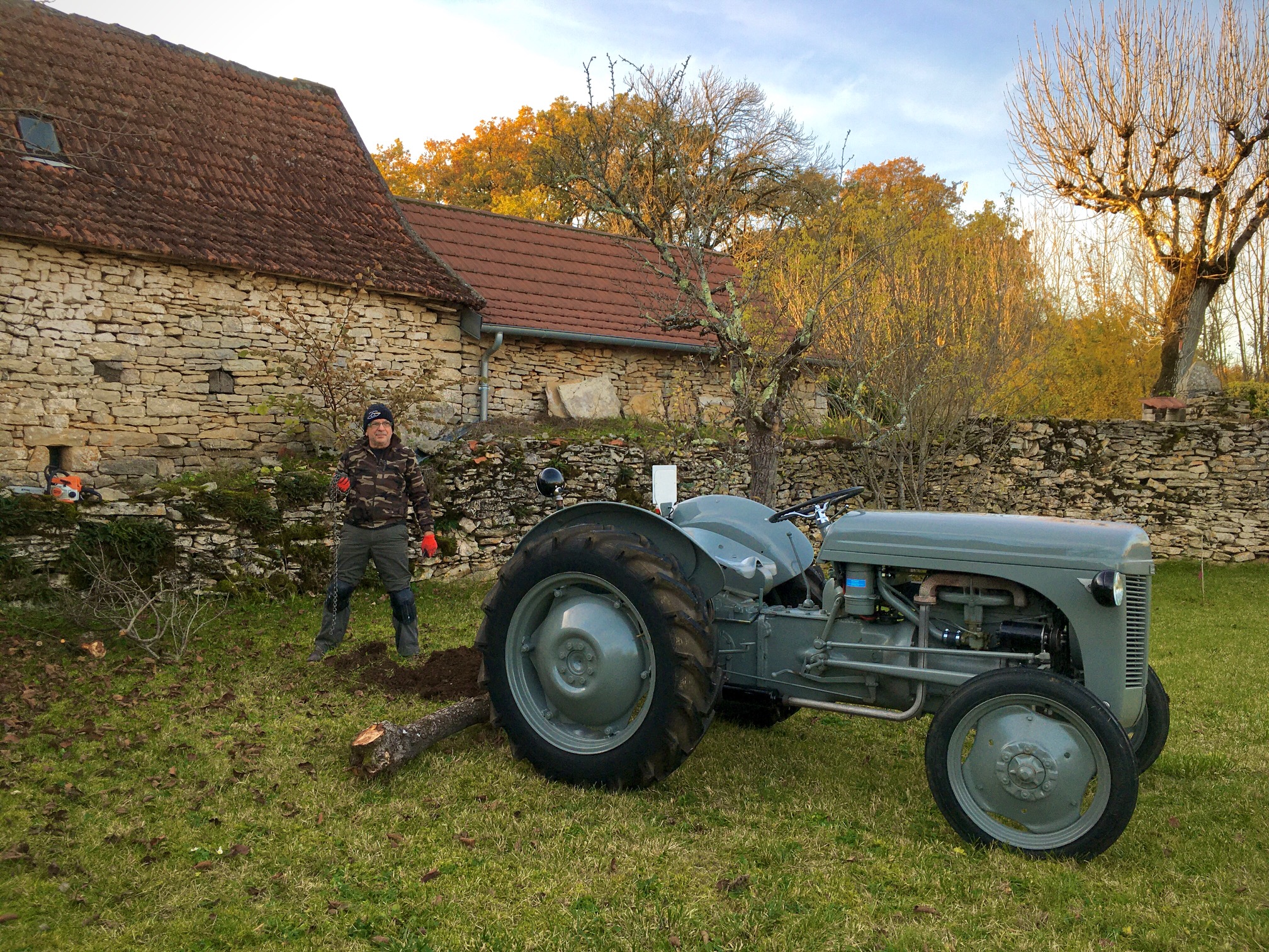 Son premier travail aura été d'arracher quelques vieux pieds de vigne malade , et un vieux prunier au bout de sa vie , le relevage s'est révélé bien pratique à cette tache !